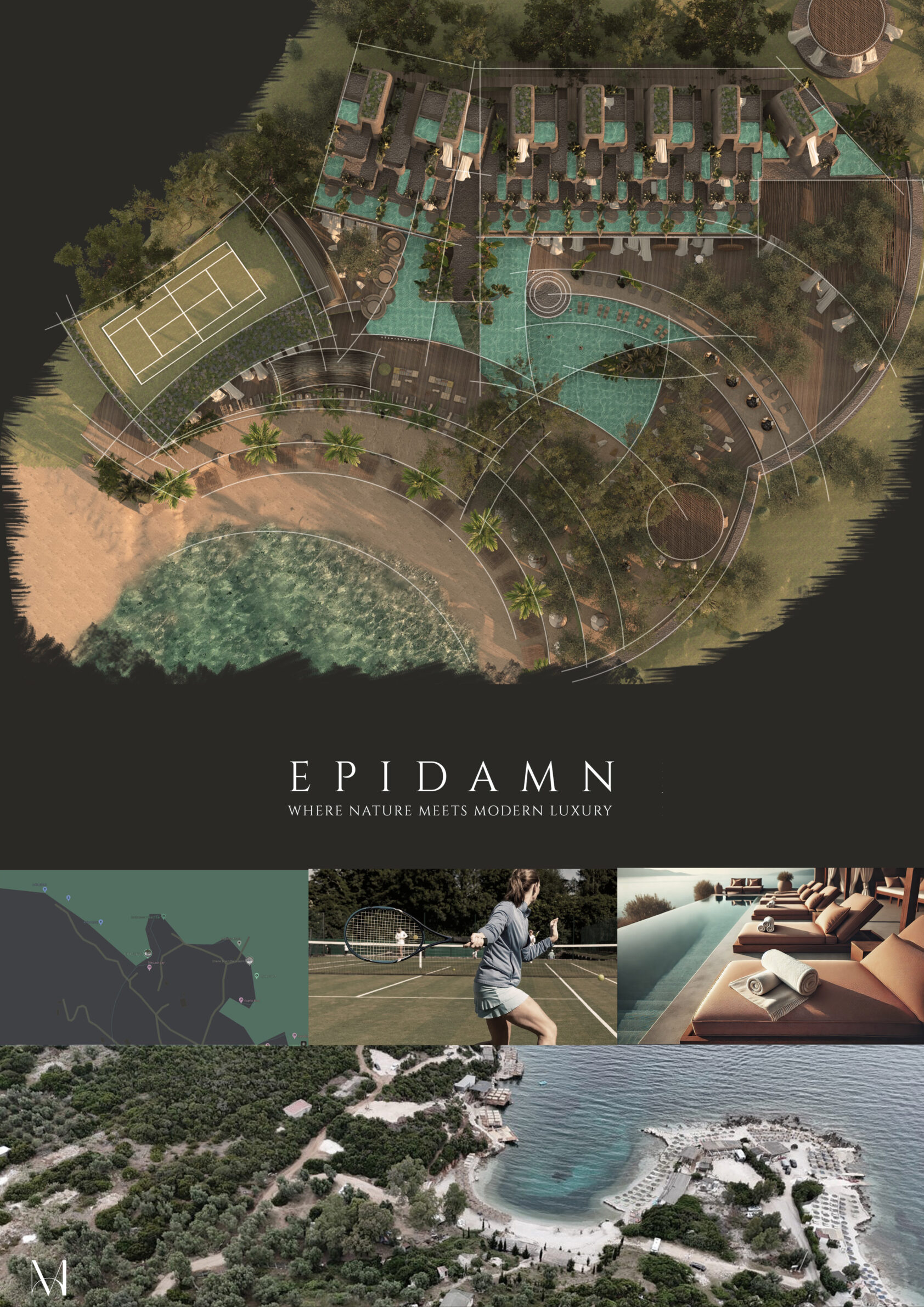 Epidamn is envisioned as a contemporary sanctuary where nature, architecture, and human experience merge into a unified spatial narrative. Located within the pristine coastal landscape of Ksamil, the project seeks to create a retreat that celebrates the harmony between the built environment and the surrounding natural ecosystem.