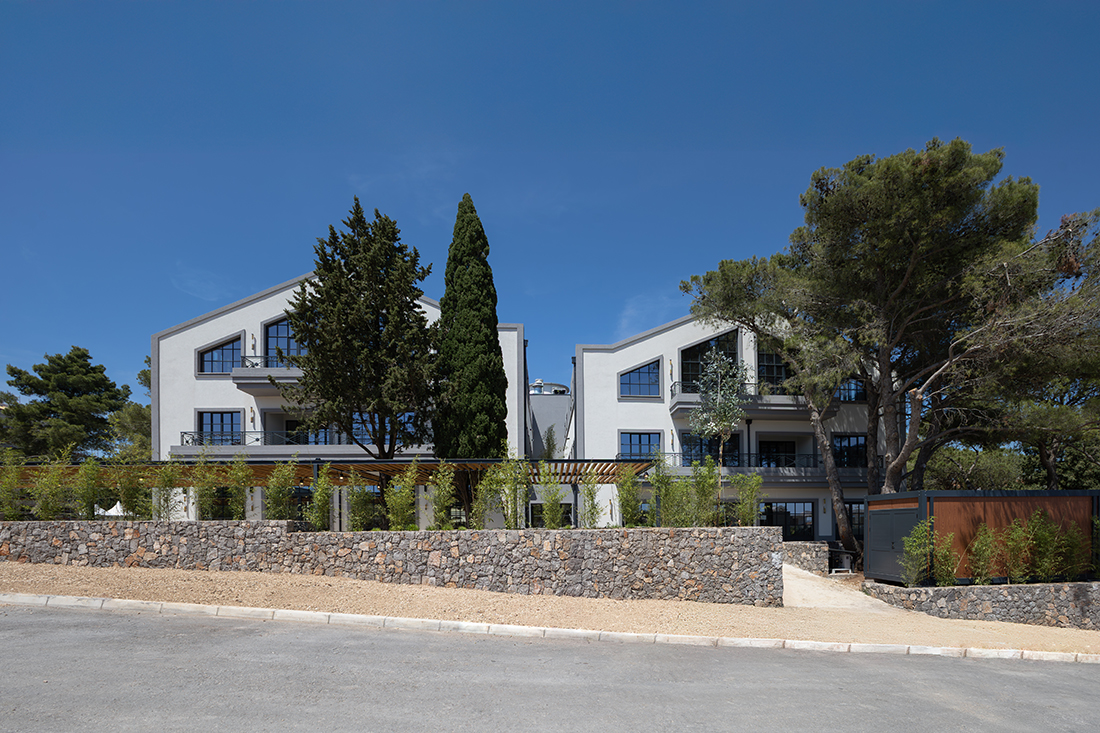 Boutique Hotel Centrale, located on Centrale Piazza in Luštica Bay, is a five-star, urban boutique hotel that blends heritage with modern design. Built on the site of a former military workshop, the project preserves and adapts the original reinforced concrete structure, integrating columns, slabs, and foundations into a new, contemporary form.