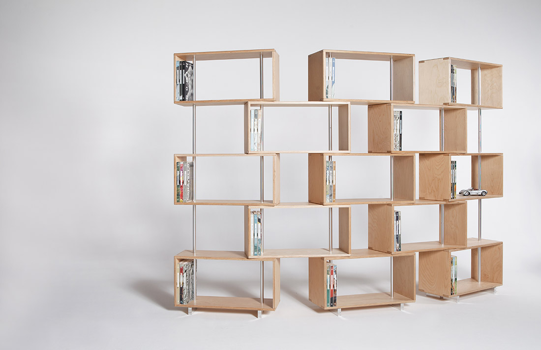 Continua is a modular furniture system that you can freely assemble by following a few simple rules. The system consists of plywood rectangular modules and a vertical grid of aluminum bars. Initially created as a bookcase, Continua’s numerous configurations allow it to be used for organizing, dividing, or even creating a room within a room. Its innovative design can follow curved lines, making it particularly suitable for furnishing offices, shops, and exhibition spaces that require frequent reorganization.