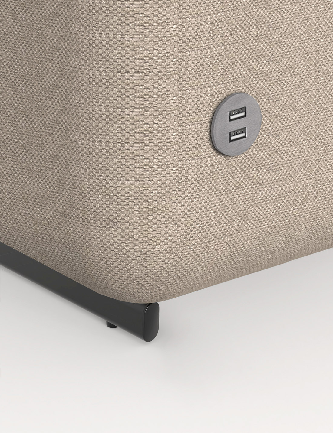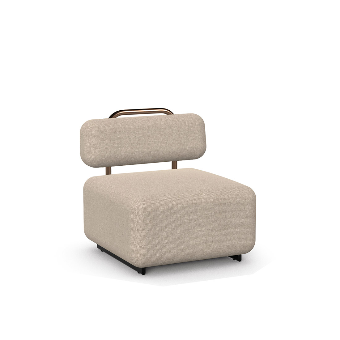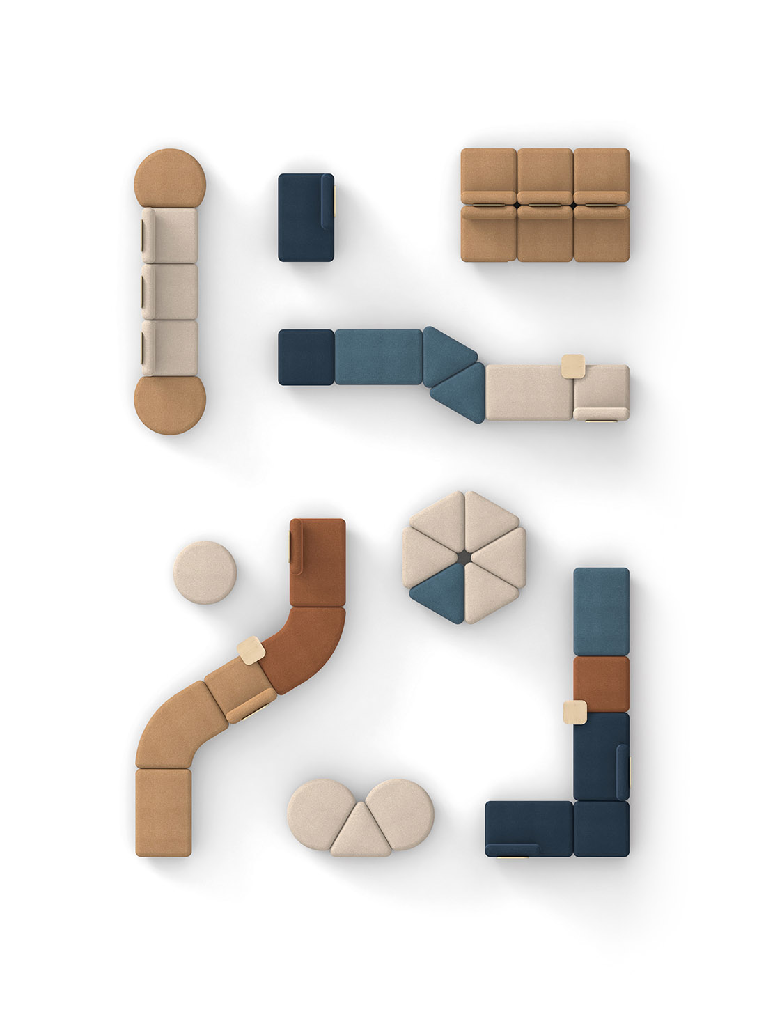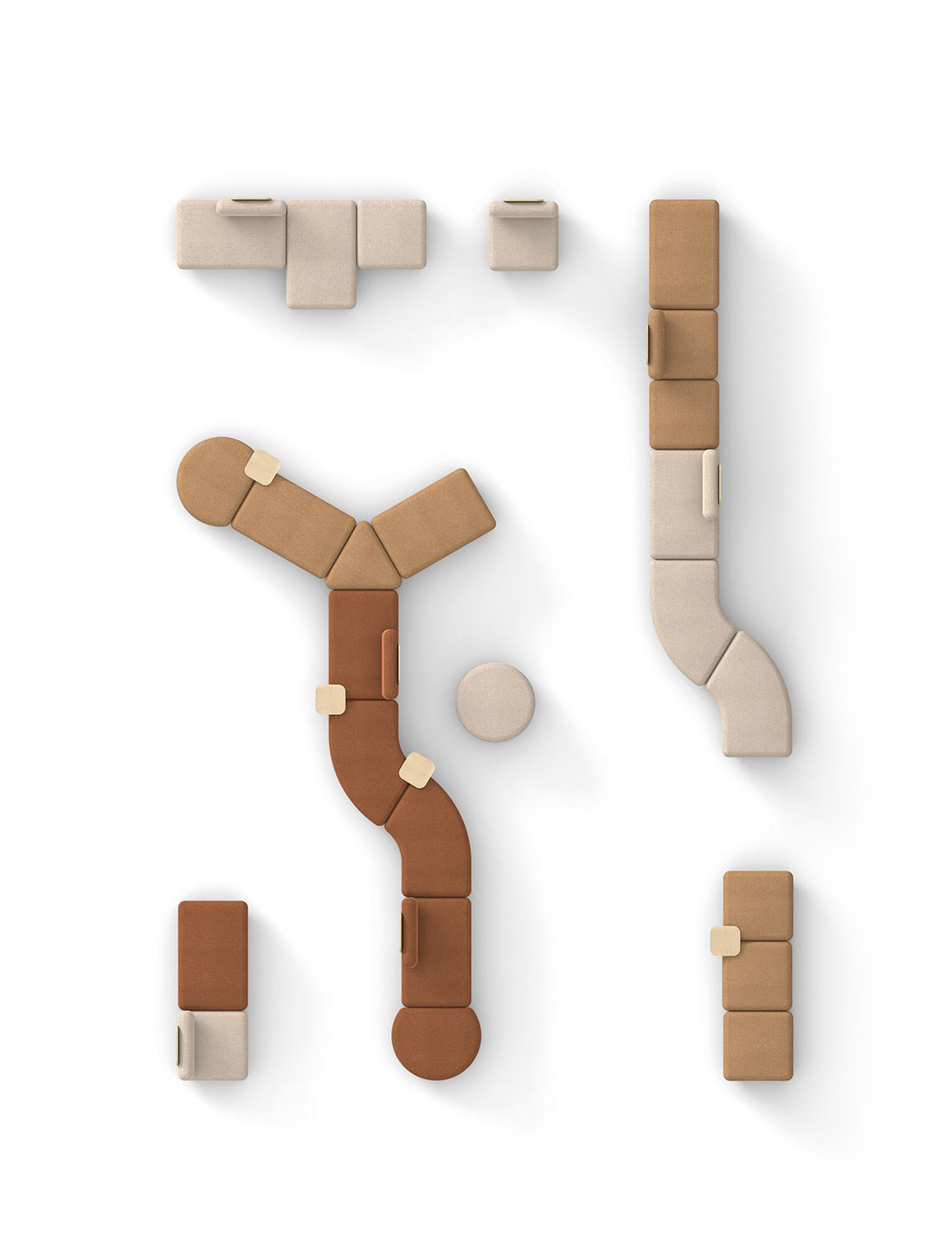 The Grand Tour seating collection features a simple design and a welcoming aesthetic, perfect for creating comfortable and adaptable seating arrangements. The collection is composed of a few padded elements that can be easily attached to each other, allowing for the creation of various seating compositions. The versatility of the collection is enhanced by the option to add wooden or metal backrests, as well as practical side tables, to the modules.