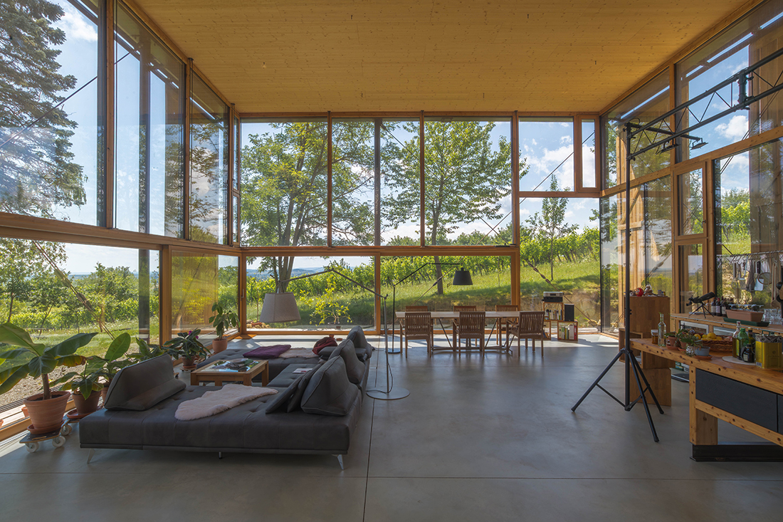 In Purbach, UNESCO World Heritage Neusiedlersee/Fertő, a spatial laboratory for a musician and a scientist has been created under strict nature conservation regulations. The building, between vineyards and forest with a view to Lake Neusiedl, blends harmoniously into the landscape thanks to untreated materials and a clear, modular design language.