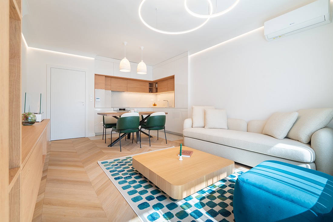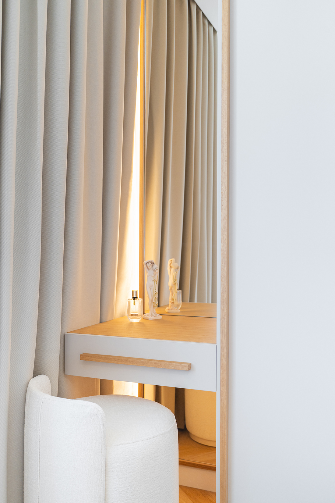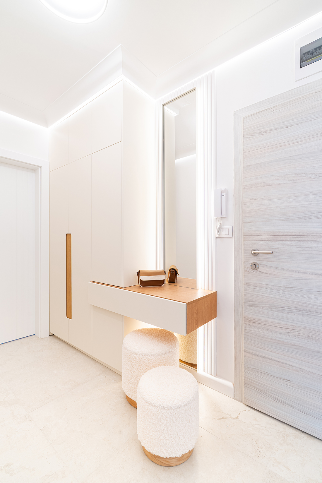 The A2210 is a 52 sq. m apartment with a minimal design that reflects the young personality of its client. It has an elegant and cozy interior with attention to detail. Inspired by soft, neutral palettes enriched with different textures. The built-in, functional, custom-made furniture allows for large storage.
