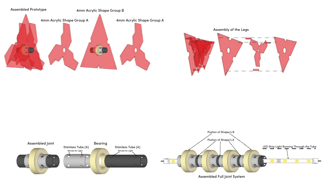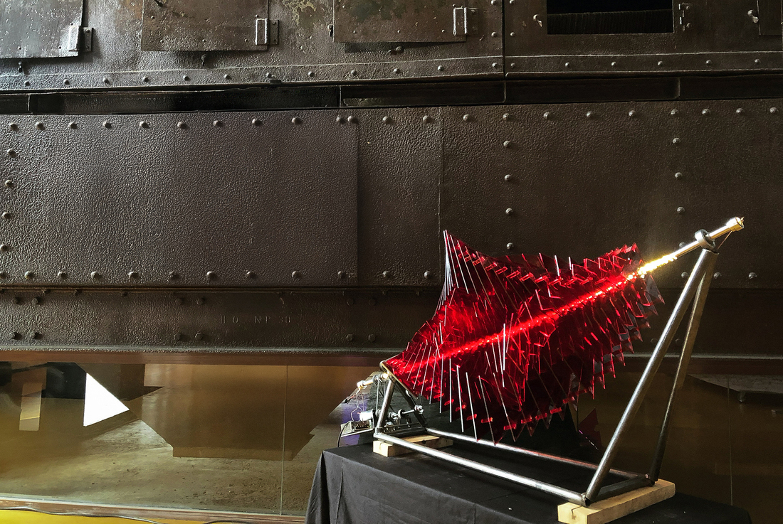 ROJO SANGRE is a self-illuminating kinetic/kinematic construction. The design output is mechanism that is operable through machine automation. Light and motion are core elements of the design problem. The design endeavors yield a consistent system, capable of generating system, capable of generating patterns and effects that only emerge through the continuous interaction of moving elements and light. There are four “performances“ to fullfill: Kinetic + Material + Sensory + Light.