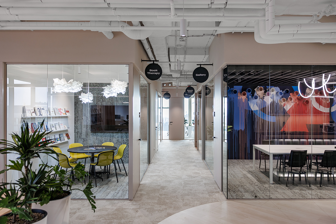 ABUGO SE is a SaaS group of companies: Shopsys, Smartsupp, Survio, and Reservio, which consolidate for one group and move into one office at the end of year 2025. Project is designed as a “Welcome to Abugo City”, which means that whole office looks like city boulevard with individual businesses, e.g., Wellness, Gallery, Boom Therapy, Cabaret, Barber Shop, Sound Studio, Mall, Beauty Salon. The design is inspired by natural materials and homey style.
