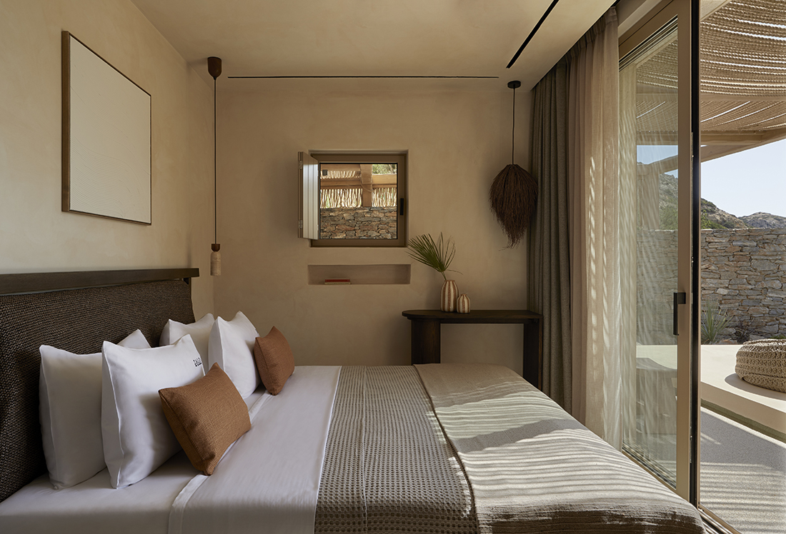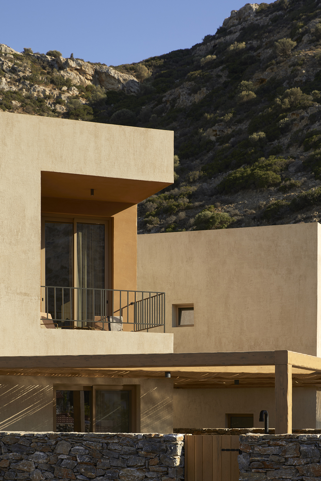 The complex is located in the seaside village of Matala, on the southern coast of Crete, embraced by the area’s distinctive rock formations that naturally enclose the plot. The starting point of the design was the creation of a cluster of small buildings, oriented around a shared courtyard, recalling the protected square of a small village. In clear reference to the values and heritage of being together and communal life in Matala, Adama redefines the traditional Greek island neighborhood, translating it into a contemporary hospitality project.