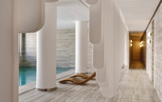 Finally, an important part of the space’s identity are the illuminated facades of the bars, the light grid system on the ceilings that functions as a unique matrix and the custom lighting constructions that were applied on parts of the wall and floor surfaces.