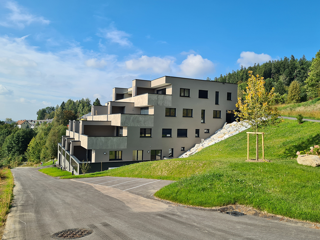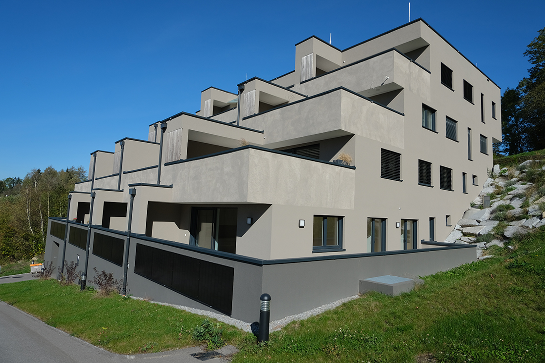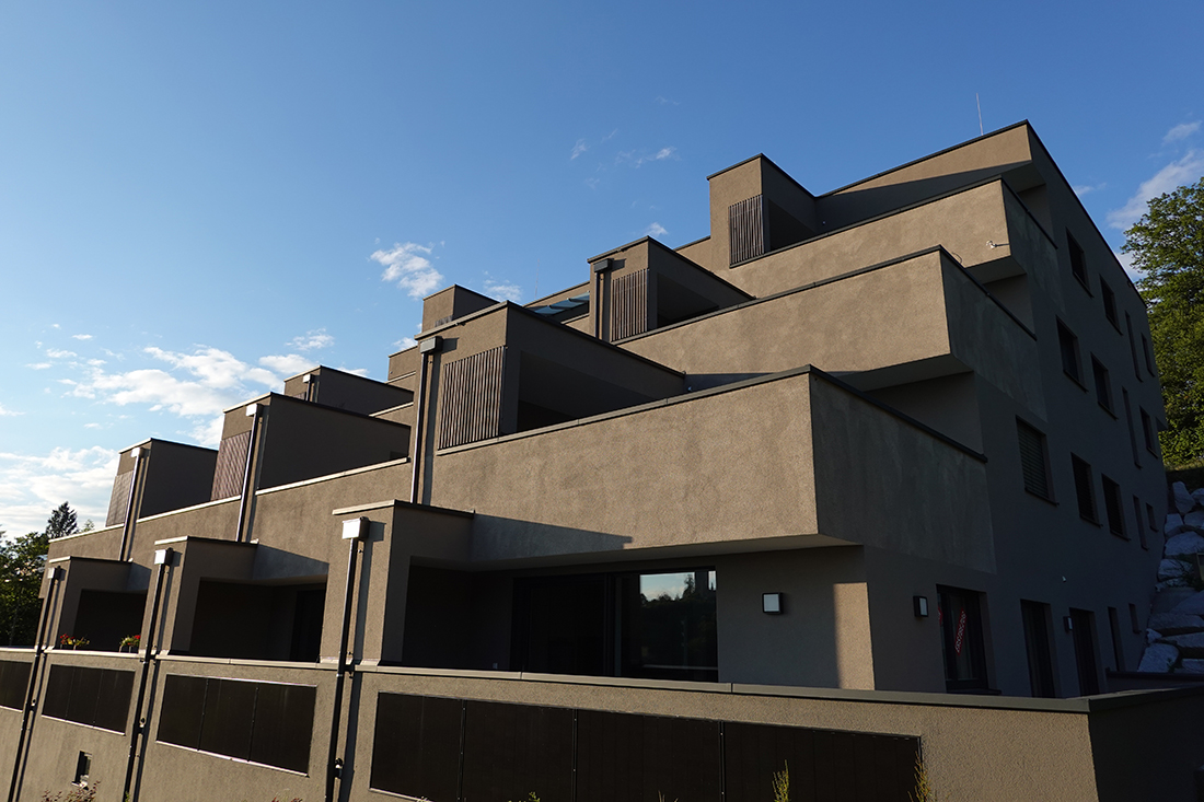 A local architect, acting as both designer and developer, proposed an alternative on a steep Waxenberg slope overlooking Castle Waxenberg’s ruins and the distant Danube Valley. This terraced building embeds garages, circulation, and services below grade, while cascading living spaces upward to capture panoramic views. Each apartment opens to generous private terraces, separated by storage niches and planted balustrades that block sightlines and sound between neighbors. From the access road, only two stories appear, respecting the region’s low vernacular. Residents enter mid-level and descend with the natural slope. Varied apartment sizes accommodate families, couples, and elderly residents with accessibility features, reconstructing the generational mix vital to rural communities. Natural color tones echo the surroundings.