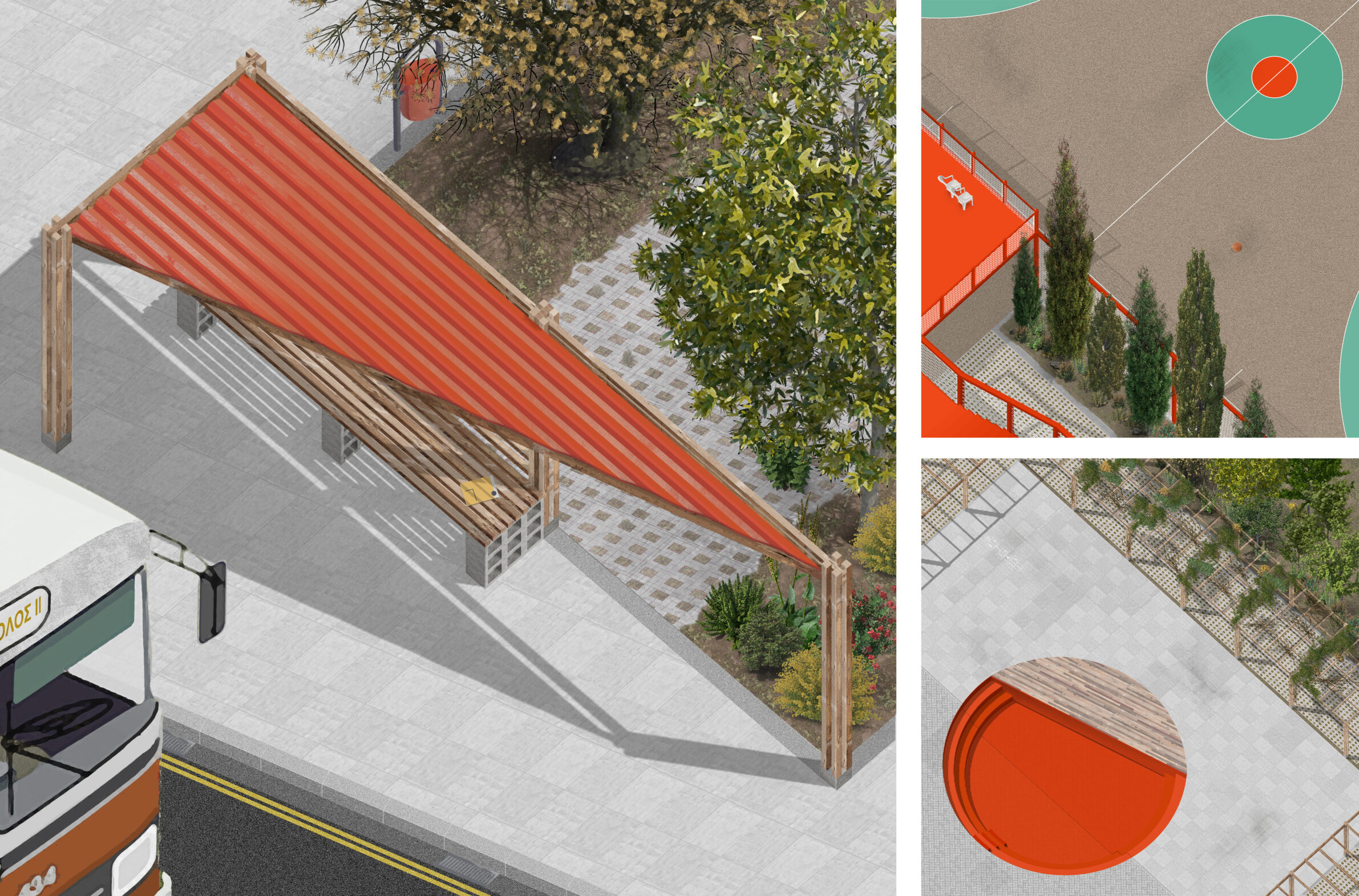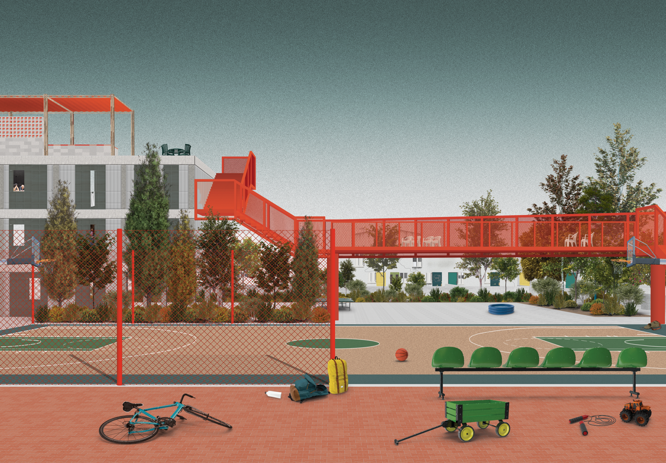 Rather than asking what should be replaced, Superstitch-Ons asks what can be cared for, repaired, and reassembled. Set within the post-war housing settlement of Strovolos II, the project introduces a superblock strategy that recenters community life by reorganizing mobility and reclaiming shared space. Existing apartment blocks are treated as active components of the project, upgraded through targeted interventions that enhance habitability while preserving social memory. Materials recovered from the existing fabric are reused to construct new collective spaces and infrastructural additions. Intergenerational craftsmanship workshops anchor the proposal, embedding making, maintenance, and learning into everyday life. The project proposes an adaptive and inclusive model of urban living, where housing operates as a shared cultural and productive system.