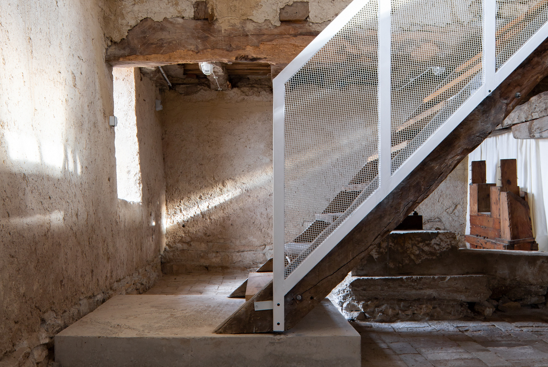 The result is a spatial dissection allowing us to appreciate the original architectural structure of the old house, which would otherwise be hidden . In the context of contemporary interventions, the exposed essential historic construction creates a museum-like feeling. In various parts of the house we see preserved imprints of textures and materials characteristic of their time. This honest exposure of the historic skeleton and imprints intends to recreate spatial "portals" which highlight themes of time and impermanence. Following the historic layering, the new intervention is honest in using contemporary materials, marking our time within the stratification of the house. This imprint aims for both material and intangible expression through the skills of local craftsmen.