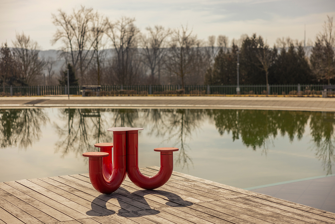 Constructed from gas pipes with plywood seating surfaces, Archie combines industrial simplicity with practical functionality. The hollow structure of the pipes also allows for integrated features – such as USB charging – making it adaptable to contemporary urban environments.