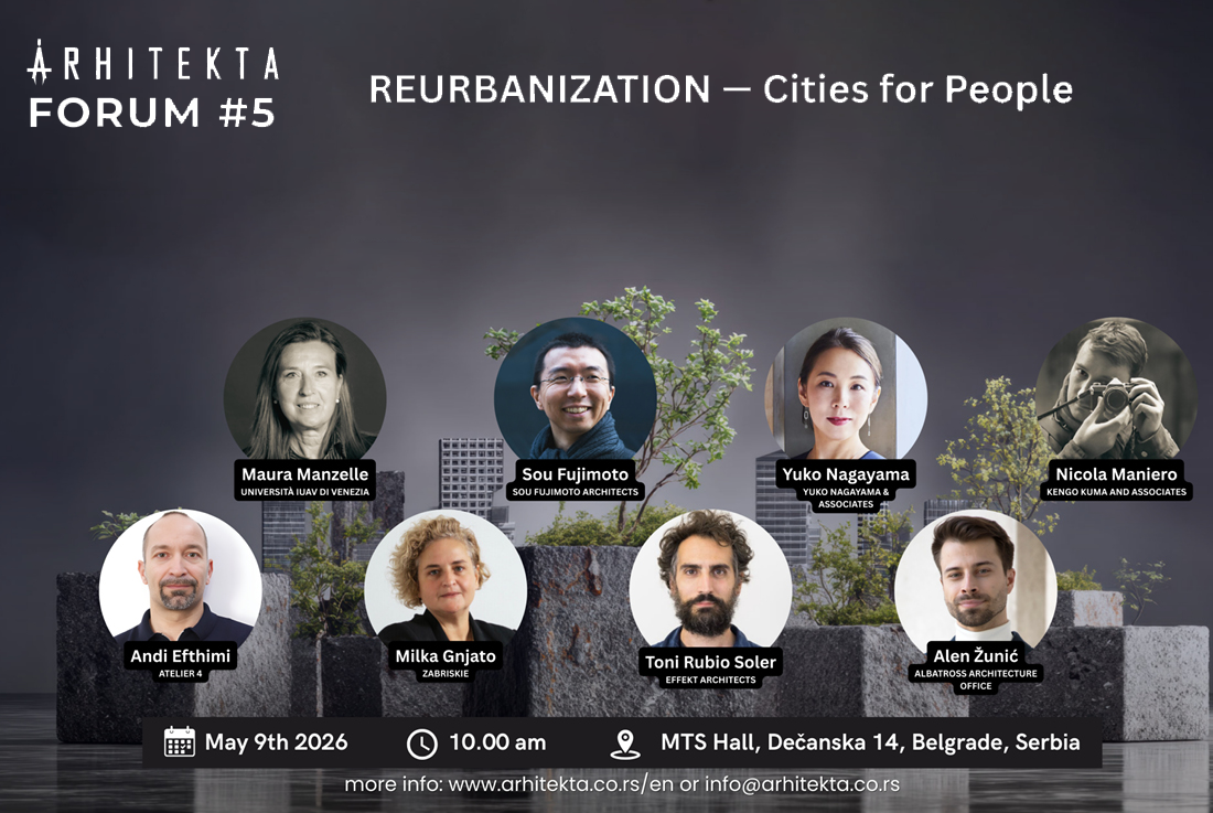Arhitekta Forum is a premier architectural event in Belgrade, gathering world-renowned experts and AEC professionals. Hosted by Arhitekta magazine, it explores global trends like sustainability and AI. This jubilee edition, Reurbanization – Cities for People, returns to MTS Dvorana on May 9, 2026, featuring icons like Sou Fujimoto. Don’t miss this chance to shape the future of urban life – register now to secure your place!