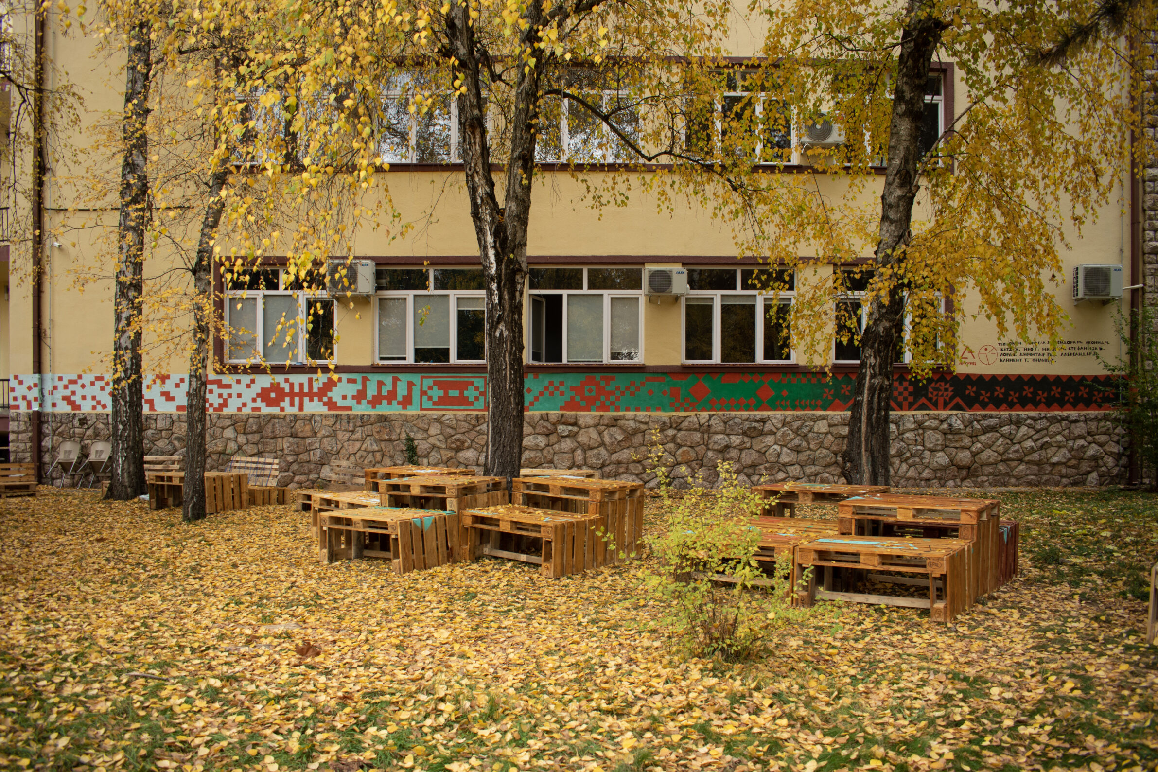 We continued our work on various topics of Ohrid, but the question about Kasarna remained open. At a later occasion a year later we got the occasion to work on the space again. A second project, called “AKT” tried approaching the topic from a different angle. Rather than talking, this time we decided to use a more tangible approach, designing and building something on the small yard in front of the buildings which houses functions like a Digital Nomad Hub; Youth Cultural Center; Center for Disabilities; Yoga Studio etc. The intervention should make the yard a place, not only a leftover, and as a possible trigger.