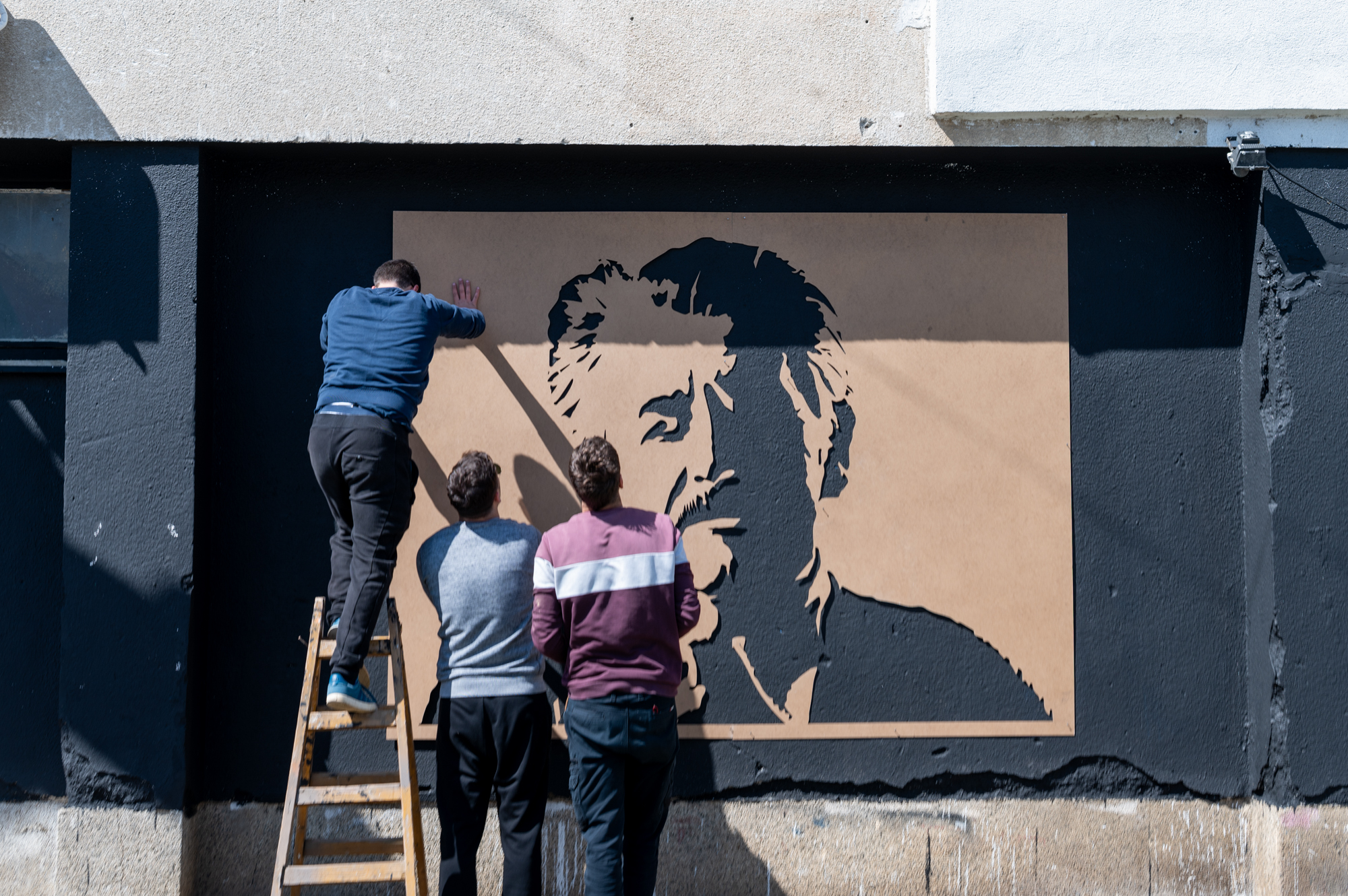 A hundred years later, in 2024, as an act of respect and appreciation for his contributions, we celebrated his birthday in the form of a large-scale mural in Ohrid. The motive of the mural is one of his works made in Zagreb in 1970. It is replicated on an area of 80 m2, along with a stencil of his portrait. The location is chosen strategically on a visible spot between his home & atelier and a newly constructed piazzetta.