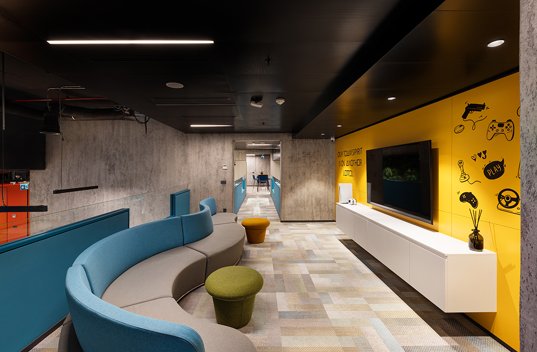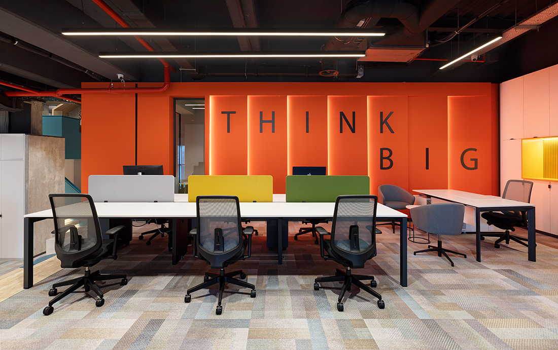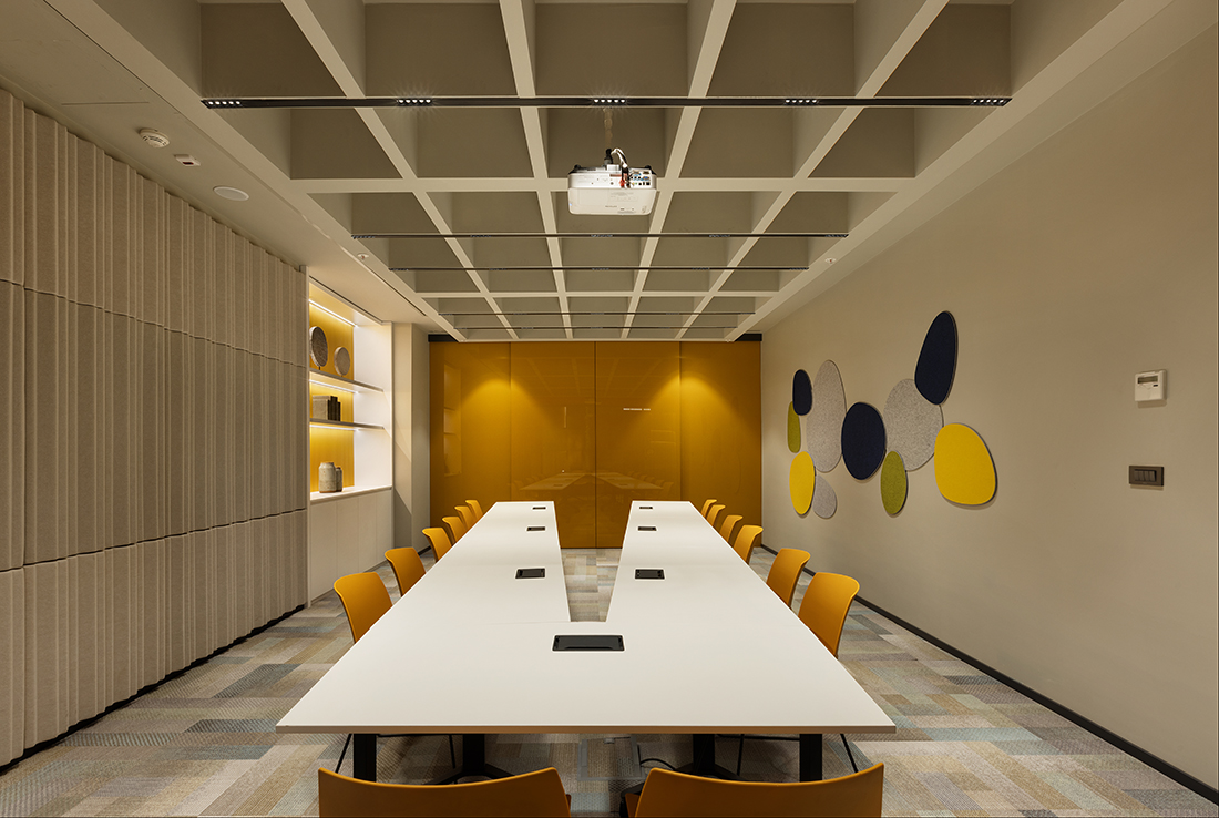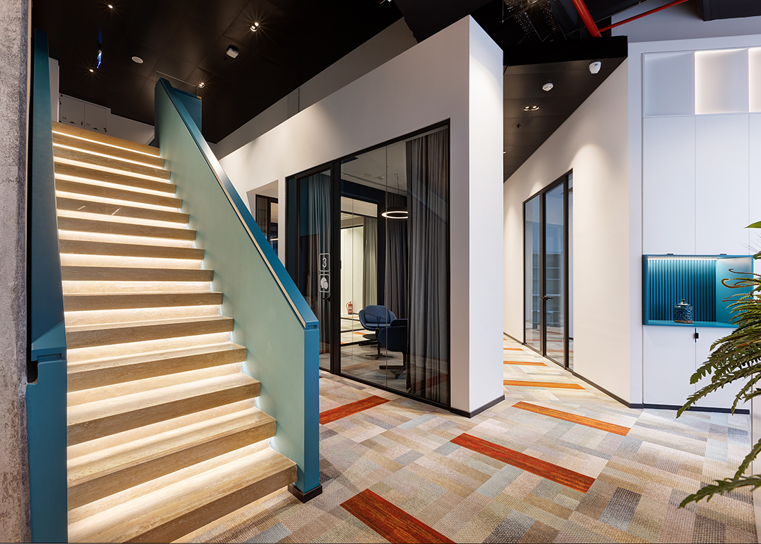The layout is guided by clarity, flexibility, and continuity, fostering intuitive circulation and supporting diverse modes of working. Open workspaces, meeting areas, and shared amenities are carefully integrated to encourage interaction and collective productivity. Exposed structural surfaces retain the raw essence of the space, while layered color fields and biophilic elements introduce warmth and reflect the company’s contemporary identity. Balancing restraint with expressive gestures, the design establishes a refined workplace where spatial depth, material honesty, and human experience converge.