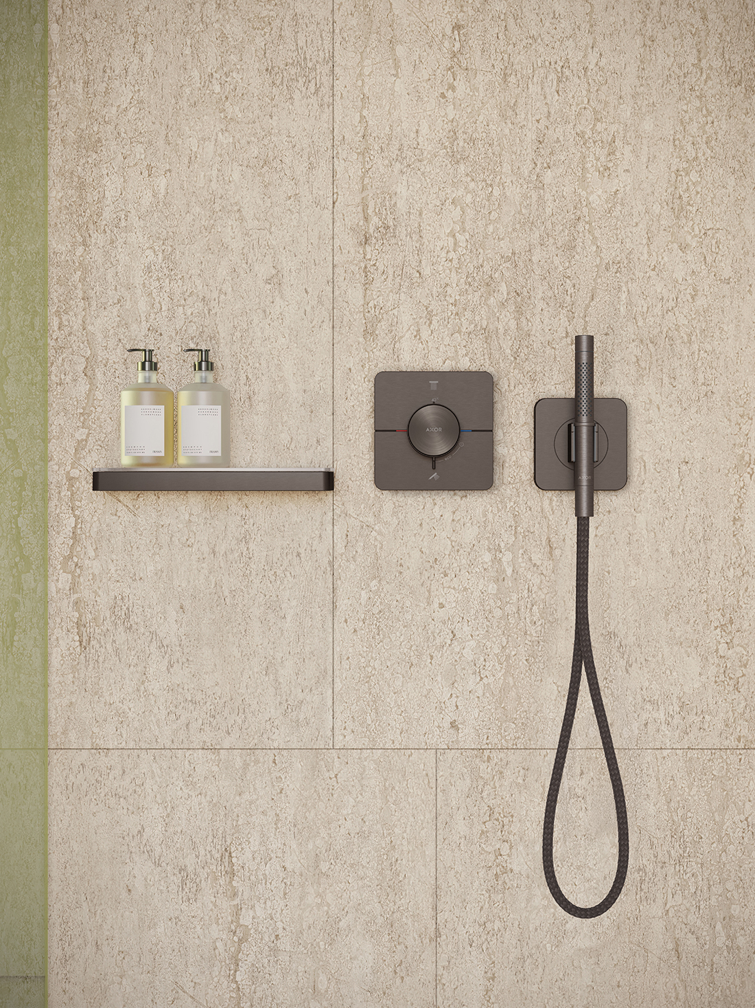 AXOR ShowerSelect ID delivers unmatched precision and personalization to the shower experience. Within its sleek design, a central temperature control dial provides satisfying haptic and auditory feedback, while surrounding paddles feature the latest Select technology, enabling quick and effortless switching between spray types and outlets. Available in three design styles — round, square, or softsquare—and a wide range of AXOR FinishPlus surfaces and AXOR Signature custom inlay options, AXOR ShowerSelect ID is more than just a marvel of technology and design.