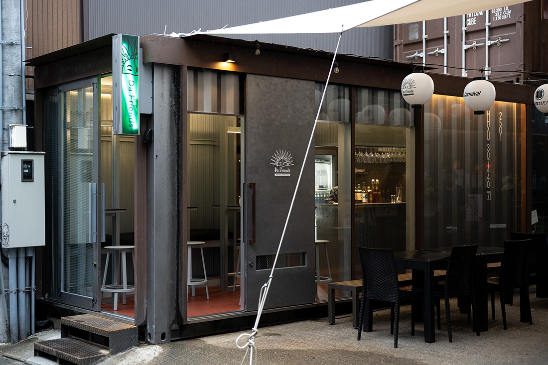 This project involves the renovation of two units into a bar and a lounge within a shipping-container restaurant alley in the city center of Toyama, Japan. Originally planned to encourage circulation through limited rents and tenancy periods, the facility faced vacancies during the COVID-19 pandemic, requiring rapid activation while the business plan and design process progressed simultaneously.