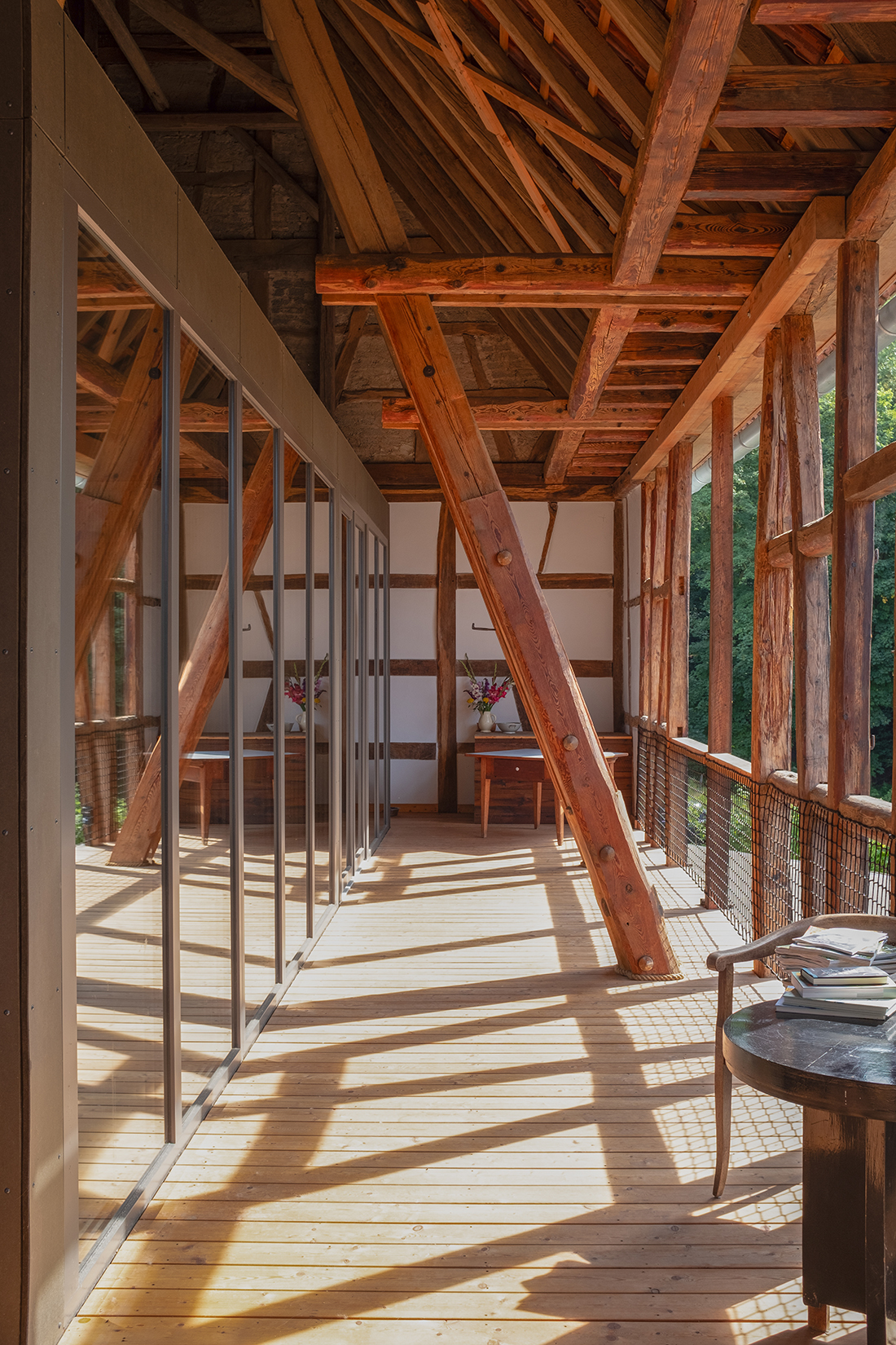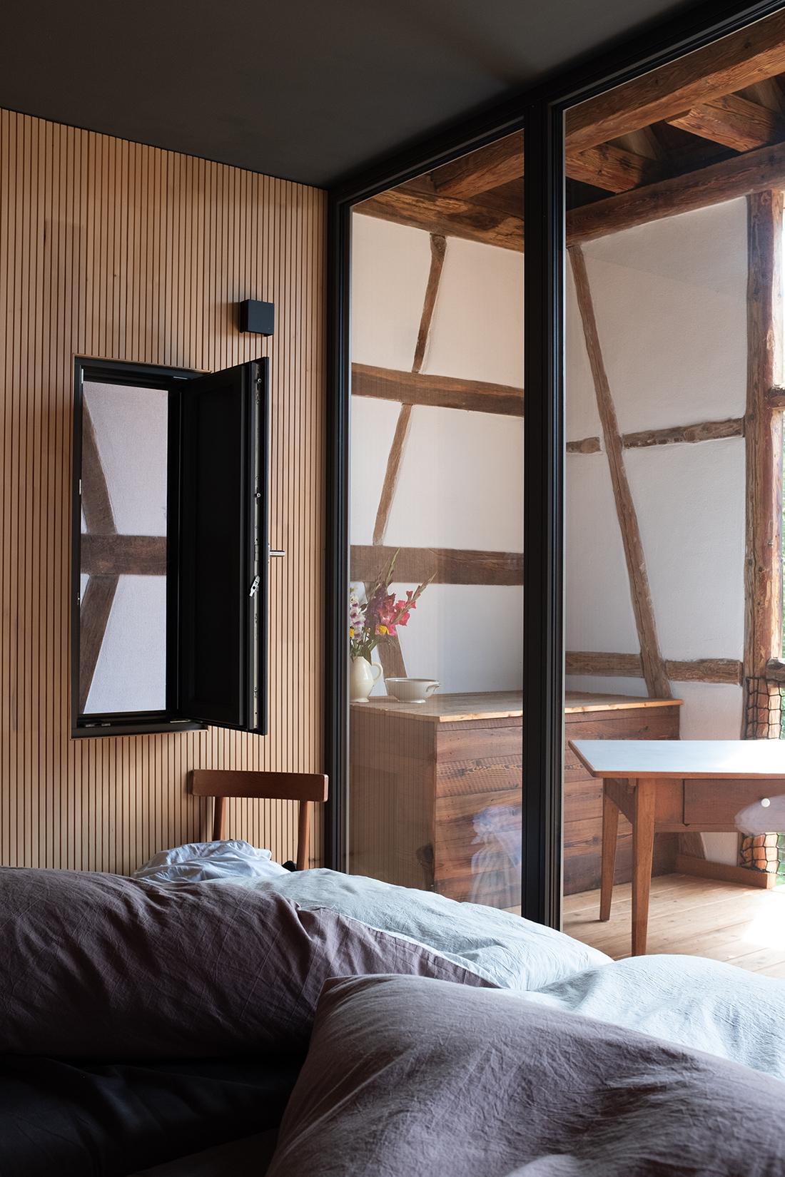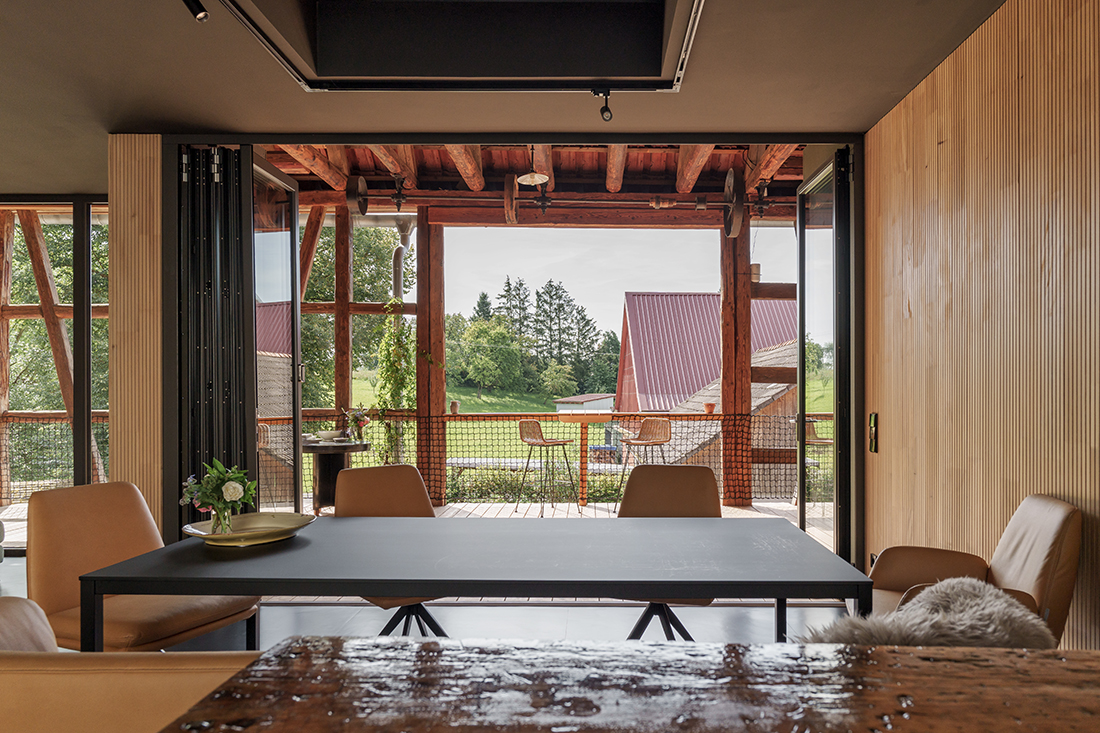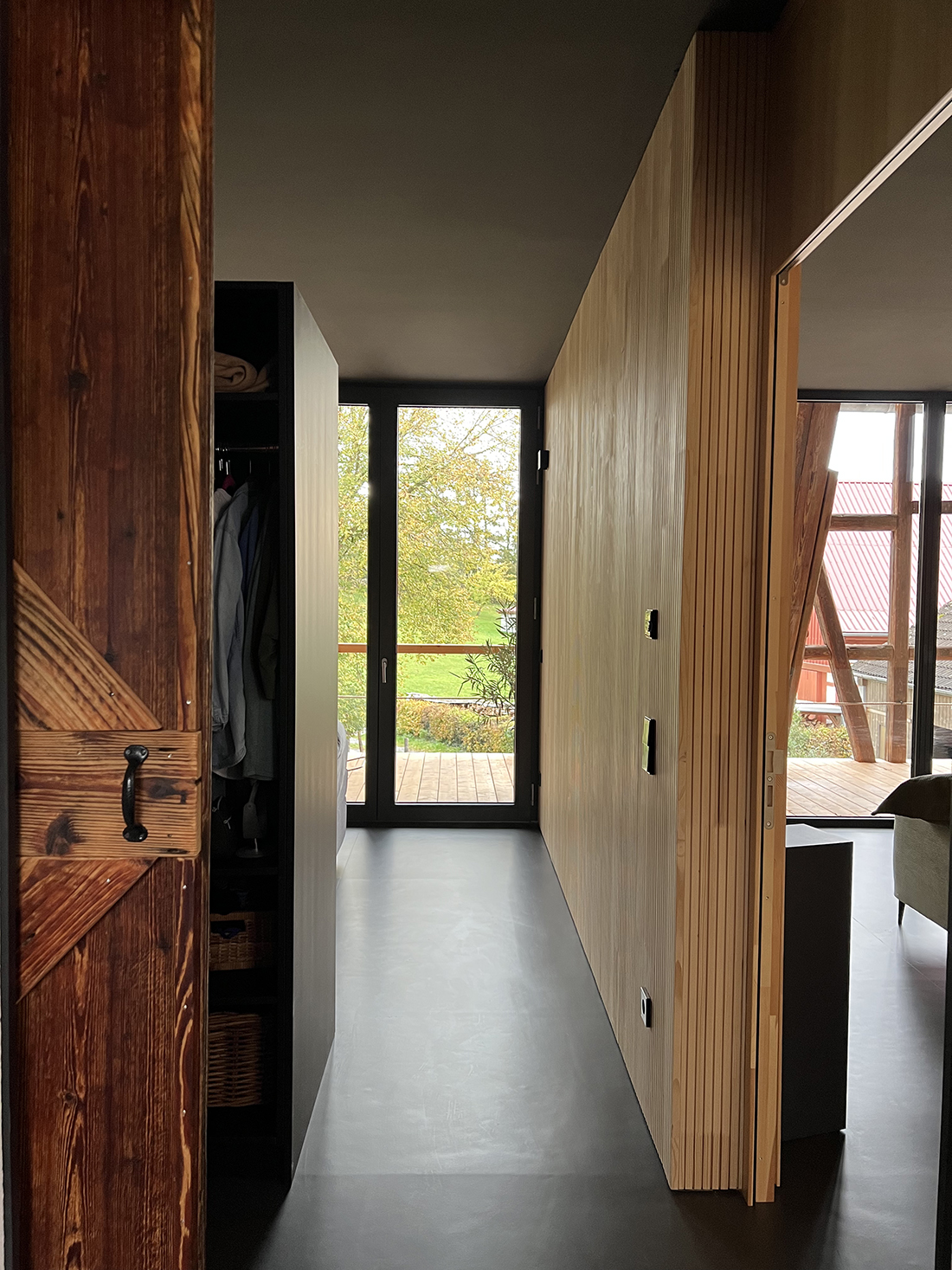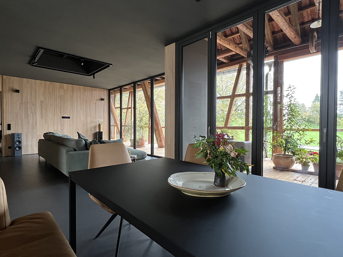 This conversion represents a sustainable reuse of the structure, minimizing land consumption and conserving resources while showcasing the historic wooden framework. The project serves as a model for the sensitive transformation of old agricultural buildings, creating modern living spaces within a historic shell and enhancing the village’s appeal. It offers a sustainable solution for vacant buildings in the region, combining heritage preservation with contemporary housing needs.