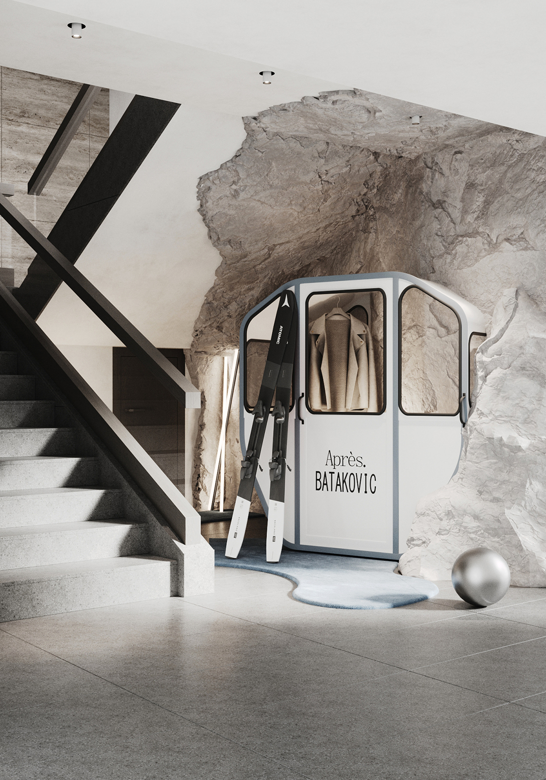 The interior of the BATAKOVIC Retail, located within the Grand Hotel at Kopaonik, is designed as a modern extension of the natural mountain environment. The main motif of the space is the rock, inspired by authentic mountain formations, which fluidly weaves through the spatial organization, creating dynamic, yet harmonious zones for hotel guests and visitors.