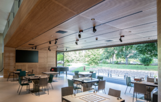 “Bath House” is an ensemble of different shades of white on 69m² GFA (54m² of living space) consisting of 2 modules. The geometrically cut wooden façade captures the different lighting scenarios and reflects them as 3D effect. Vertical blinds in front of windows serve not only as a privacy screen, but also as a shade for the residents during the hot summer months at the Esterhazy Lake. These elements underline the cool aura of the bath, making the shady and cooling aspect of the house visually recognizable.