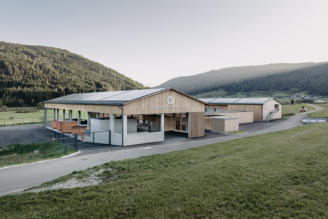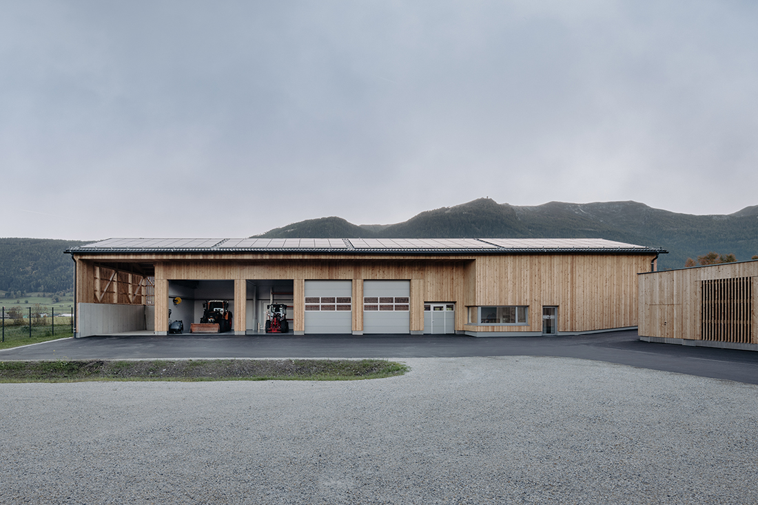 The municipal construction yard and recycling center in Mauterndorf reinterprets the traditional, elongated building typology of the Lungau region in a contemporary manner. Its façade is characterized by alternating open and closed vertical larch elements. Three volumes – construction yard, storage units, and recycling center – line the northern access road and form a U-shaped layout around a central maneuvering yard.