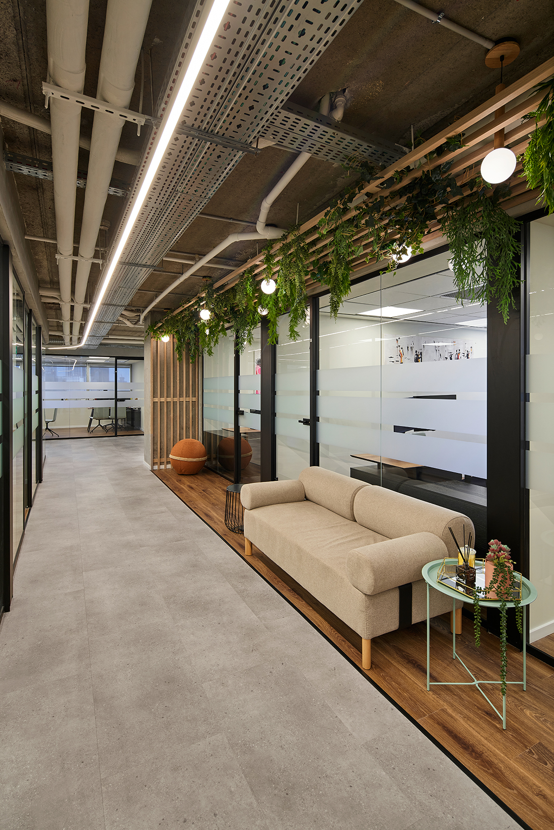 Planning and design of the BDO Digital Department in Tel Aviv, located on a 750 sqm floor within a 1980s building characterized by low ceilings and a central structural core. The architectural challenge led to a circular flow concept, organizing the space in a clear and efficient manner.