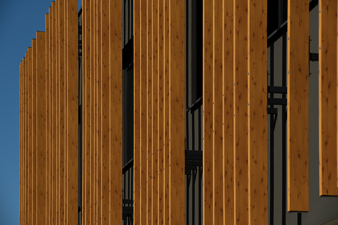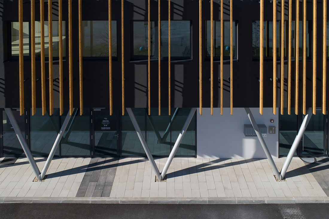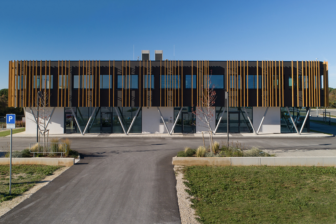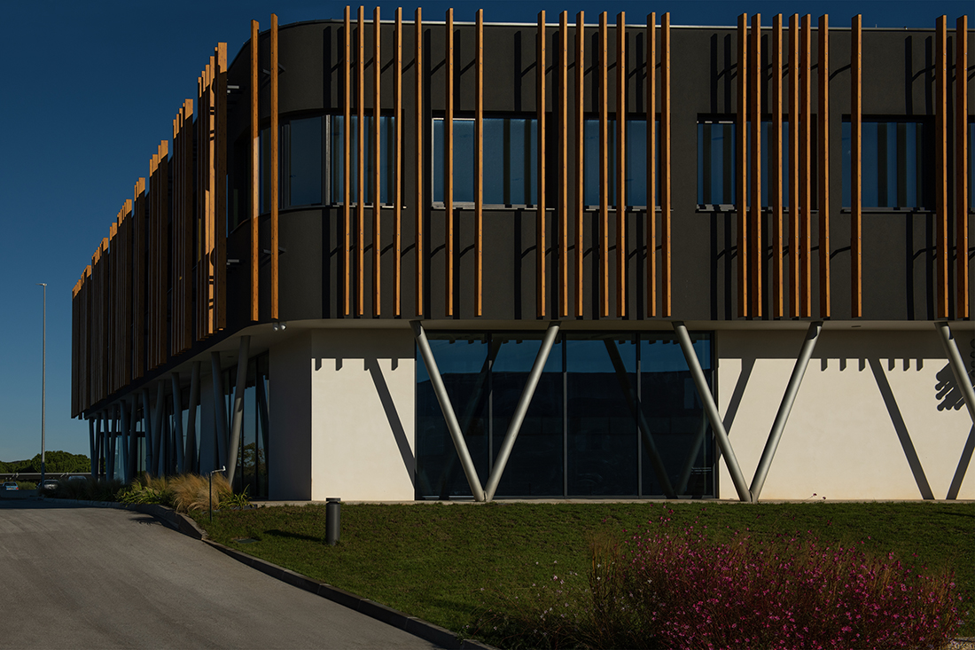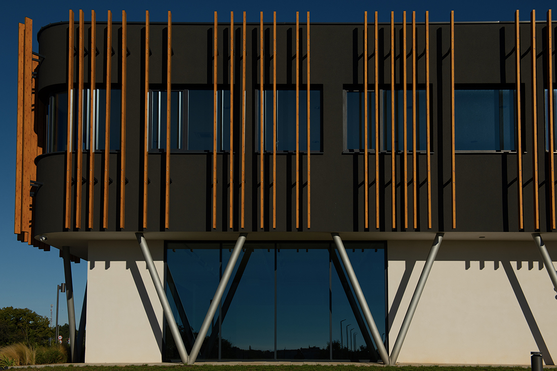 The goal of the project was to create a recognizable architecture for the client’s new headquarters. We designed a two-story commercial building (P+1) to accommodate multiple functional units and flexible working spaces. Its architectural identity is defined by a clean, minimalist base volume and a striking upper façade, featuring vertical sun-shading elements that create a dynamic play of light and shadow.
