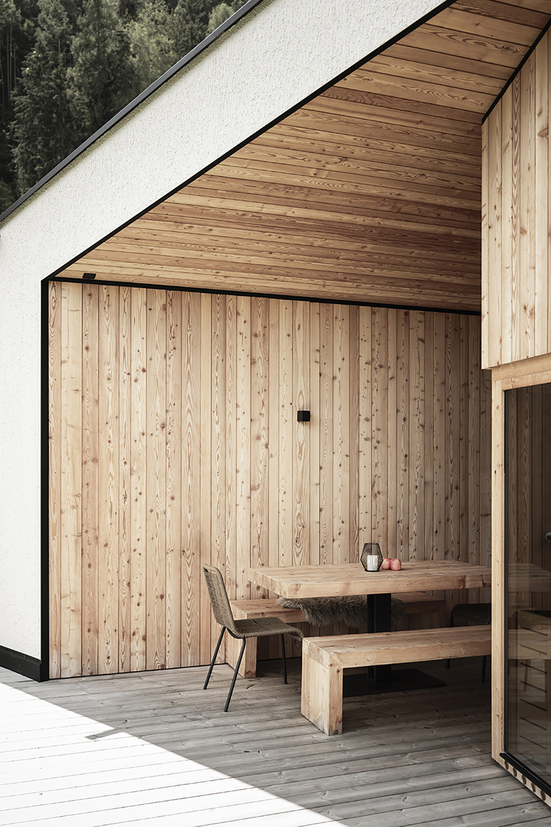 Great emphasis was placed on integrating nature and preserving the characteristic rural environment. The clear architectural language and minimalist use of materials reflect the simplicity, groundedness, and deep sense of tradition that continue to thrive in these mountain regions.