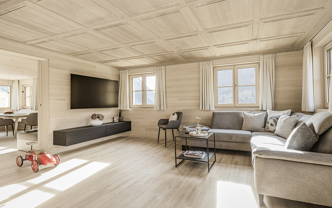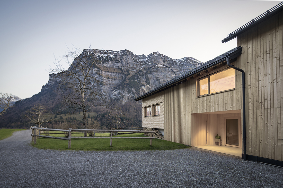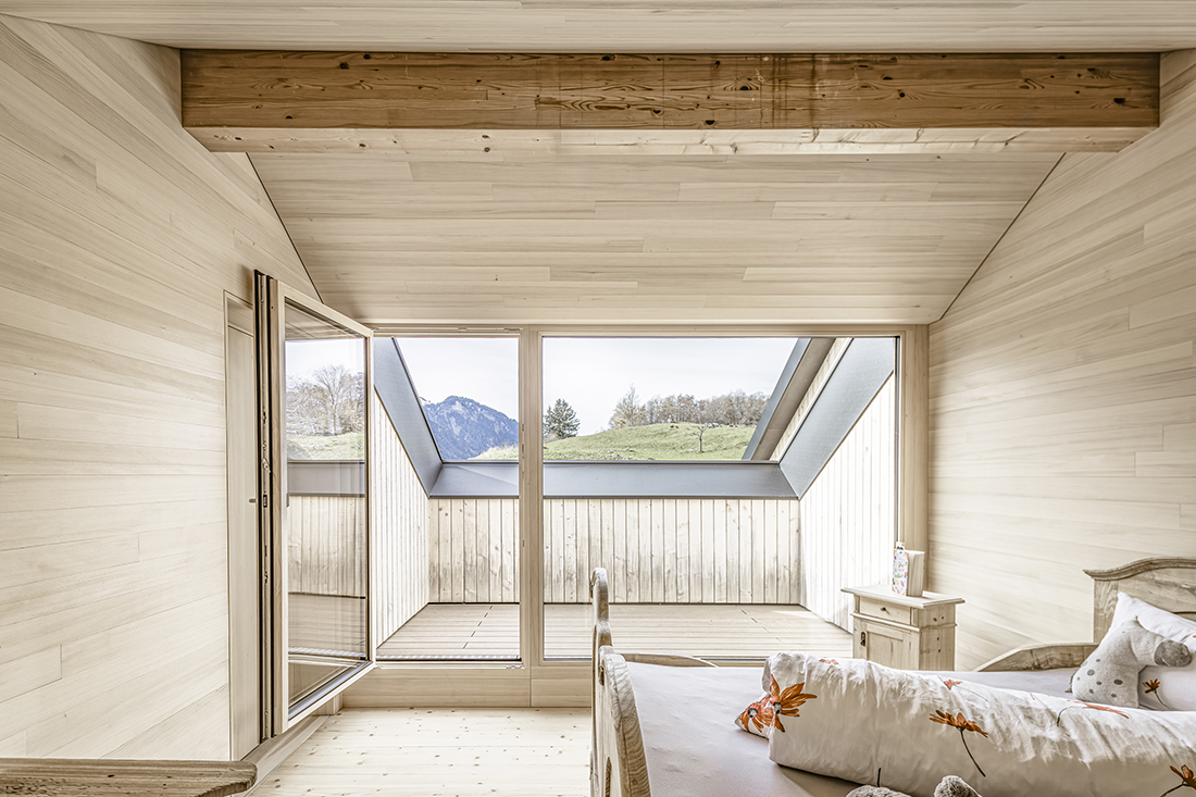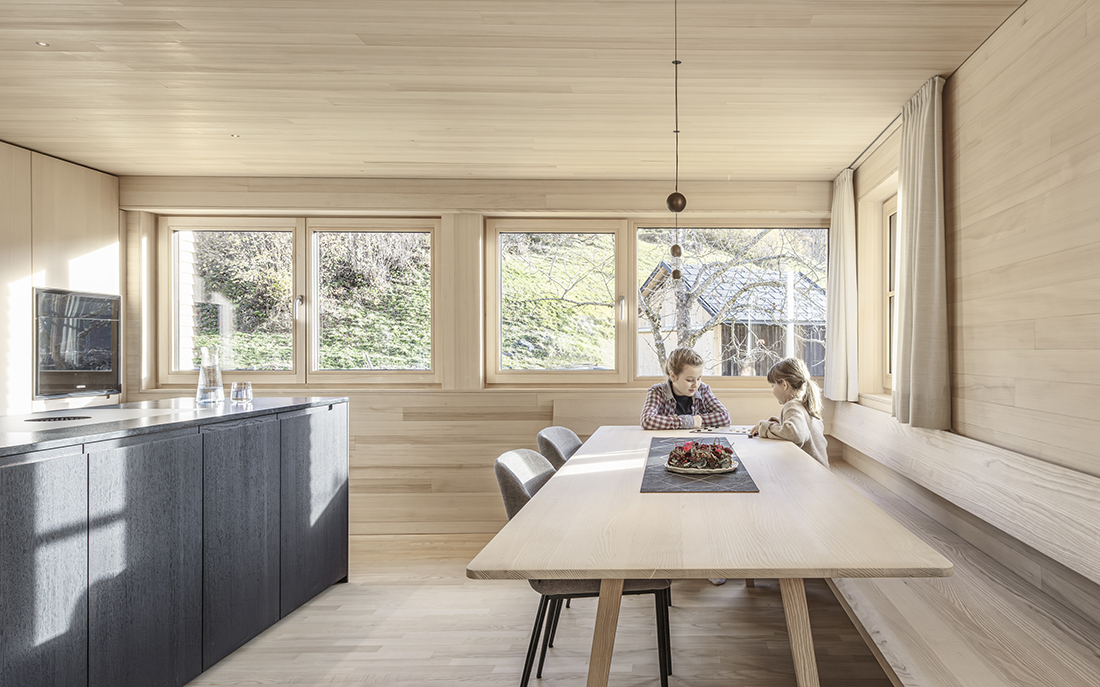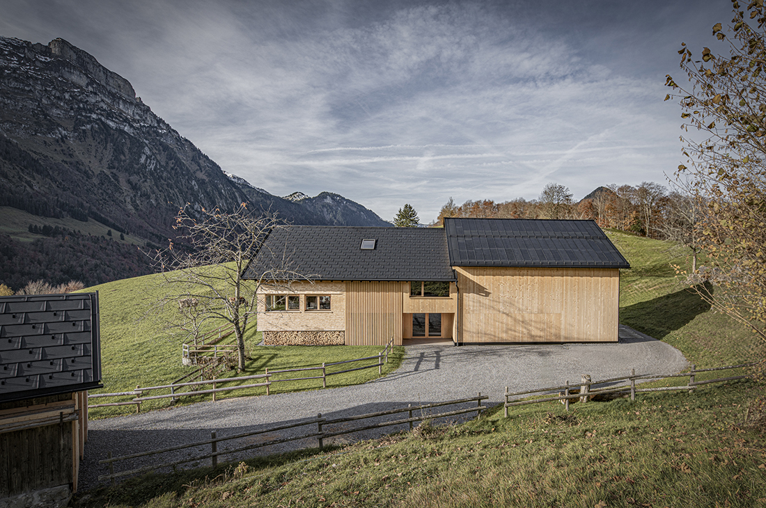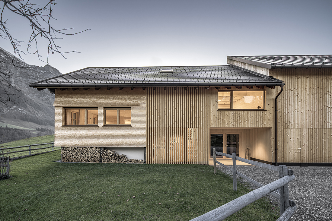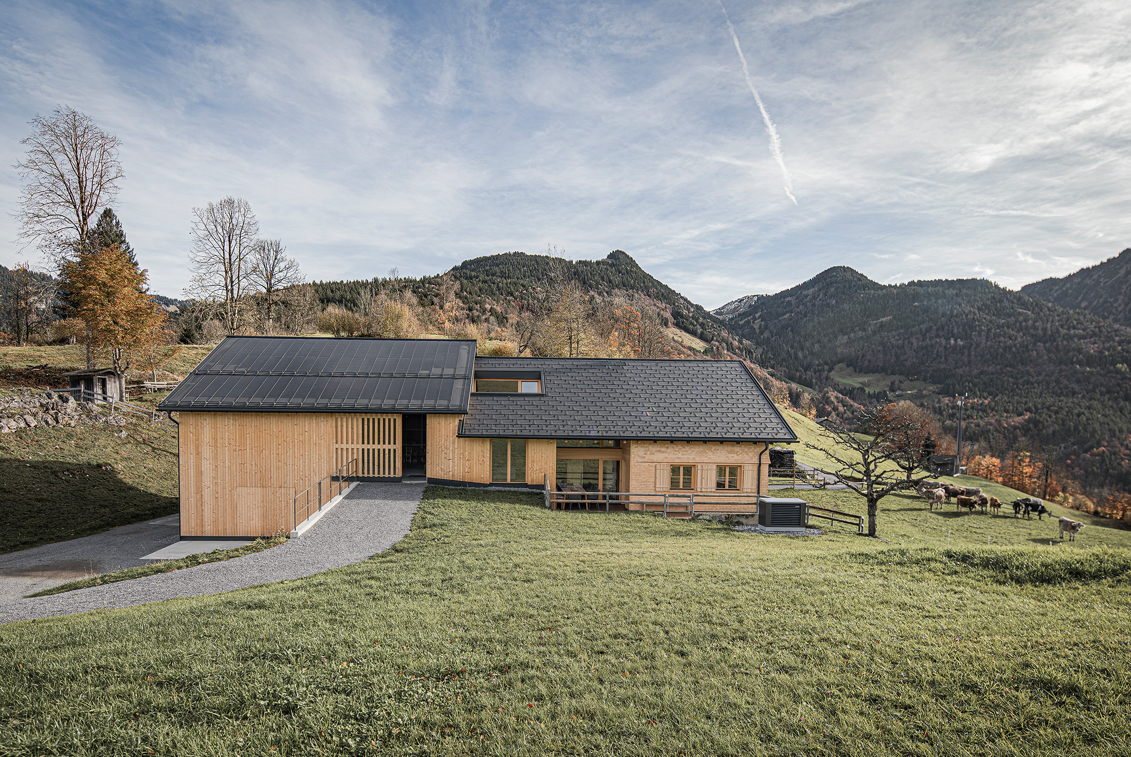 On the Schnepfegg Pass between Schnepfau and Bizau, a traditional Vorsäß has been made usable again throughout the year. On the site where the inn “Ochsen” burned down in 1954, a small hut for seasonal use was later built. Today, it has once again become a place for living and working, located next to the listed Wendelinskapelle from 1636. The former agricultural section was rebuilt, while the residential part was carefully renovated.