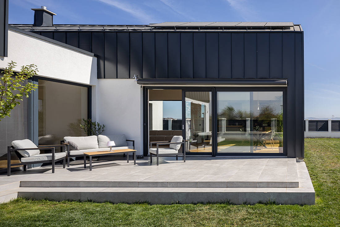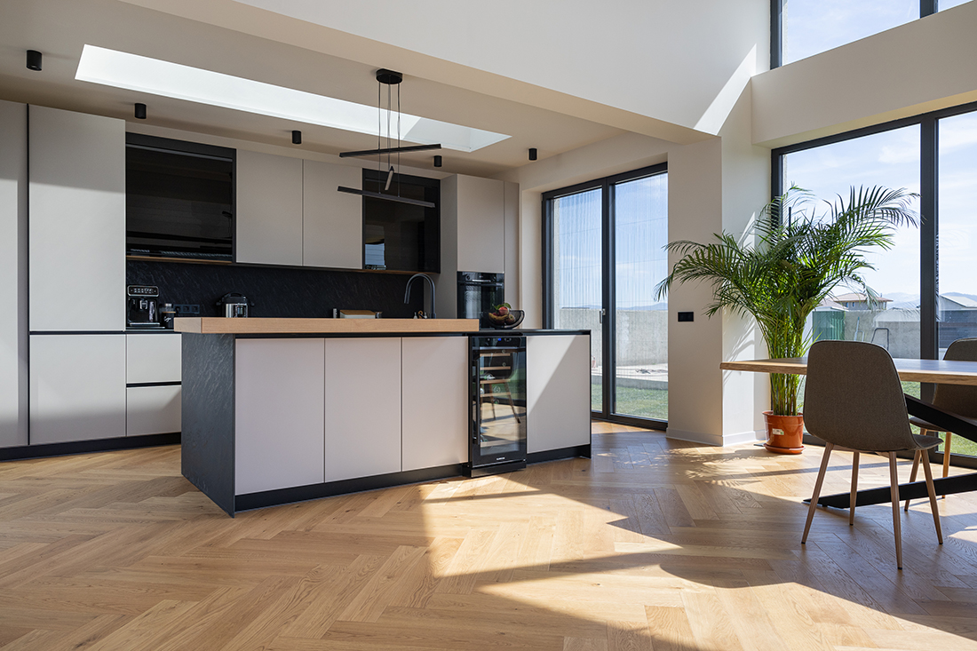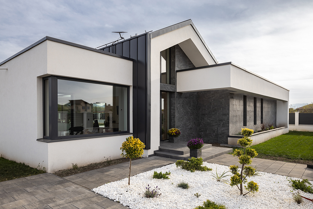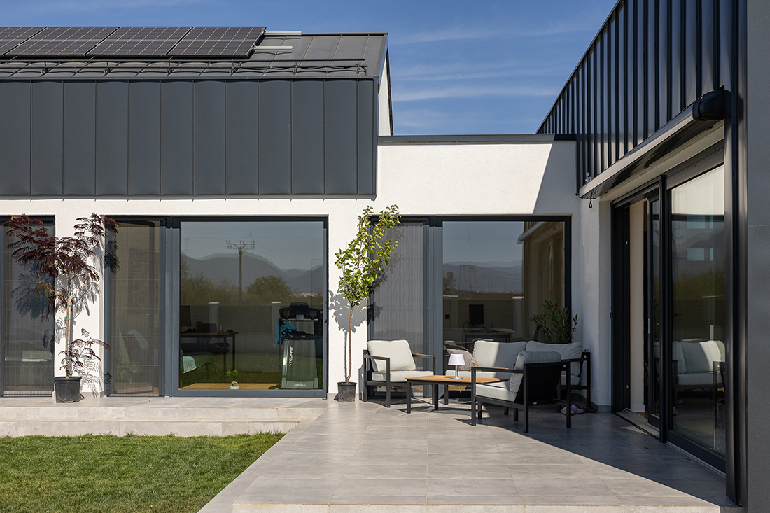 The BLD House project is centered on the principles of introversion and energy efficiency, featuring expansive glazed surfaces that exclusively overlook the private courtyard. The design separates the day and night areas through varying ceiling heights and the placement of an integrated fireplace. The orientation of the house is meticulously planned to ensure each room receives ample natural light, maximizing comfort while allowing the solar panels to operate at 100% efficiency.