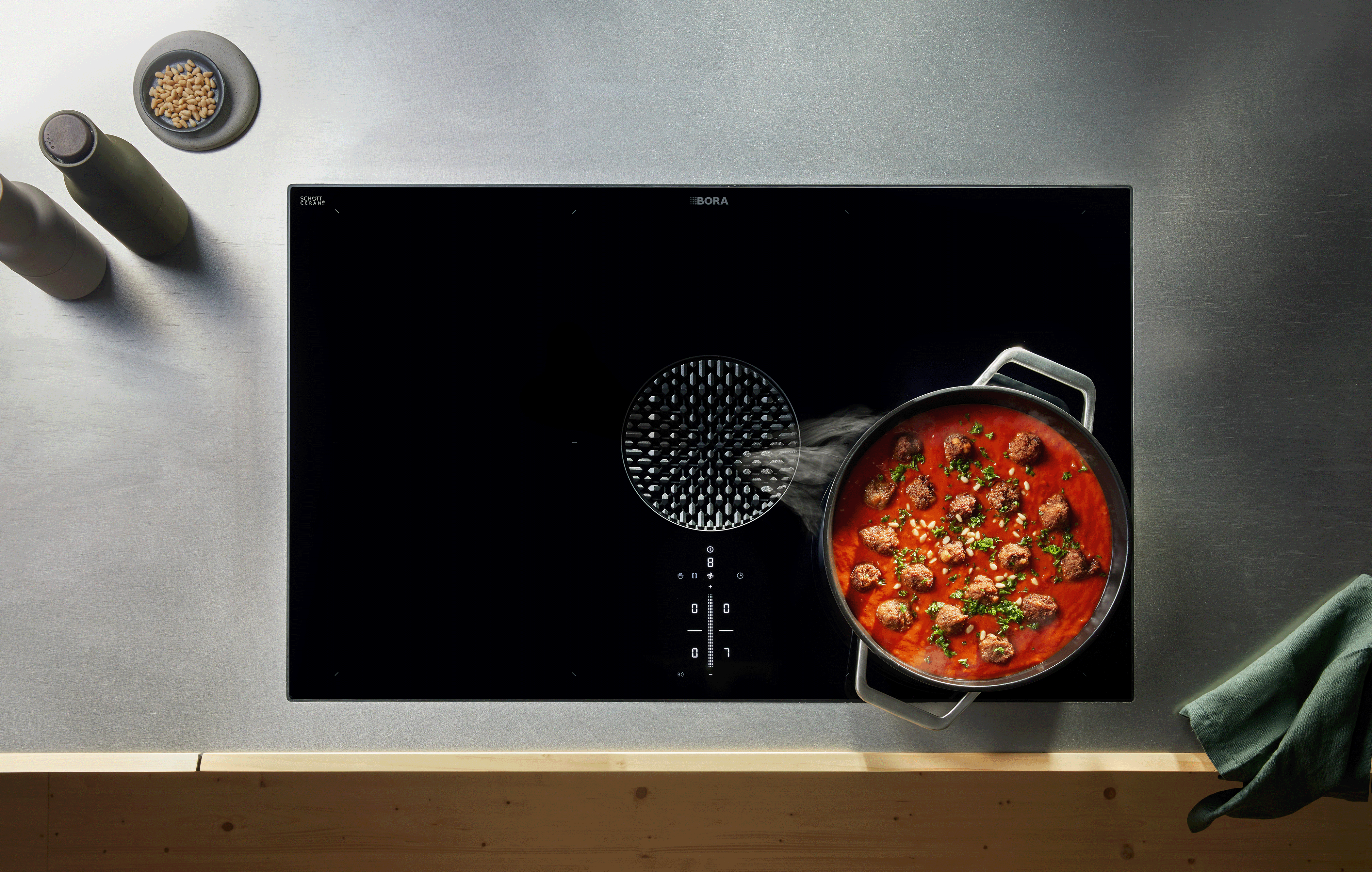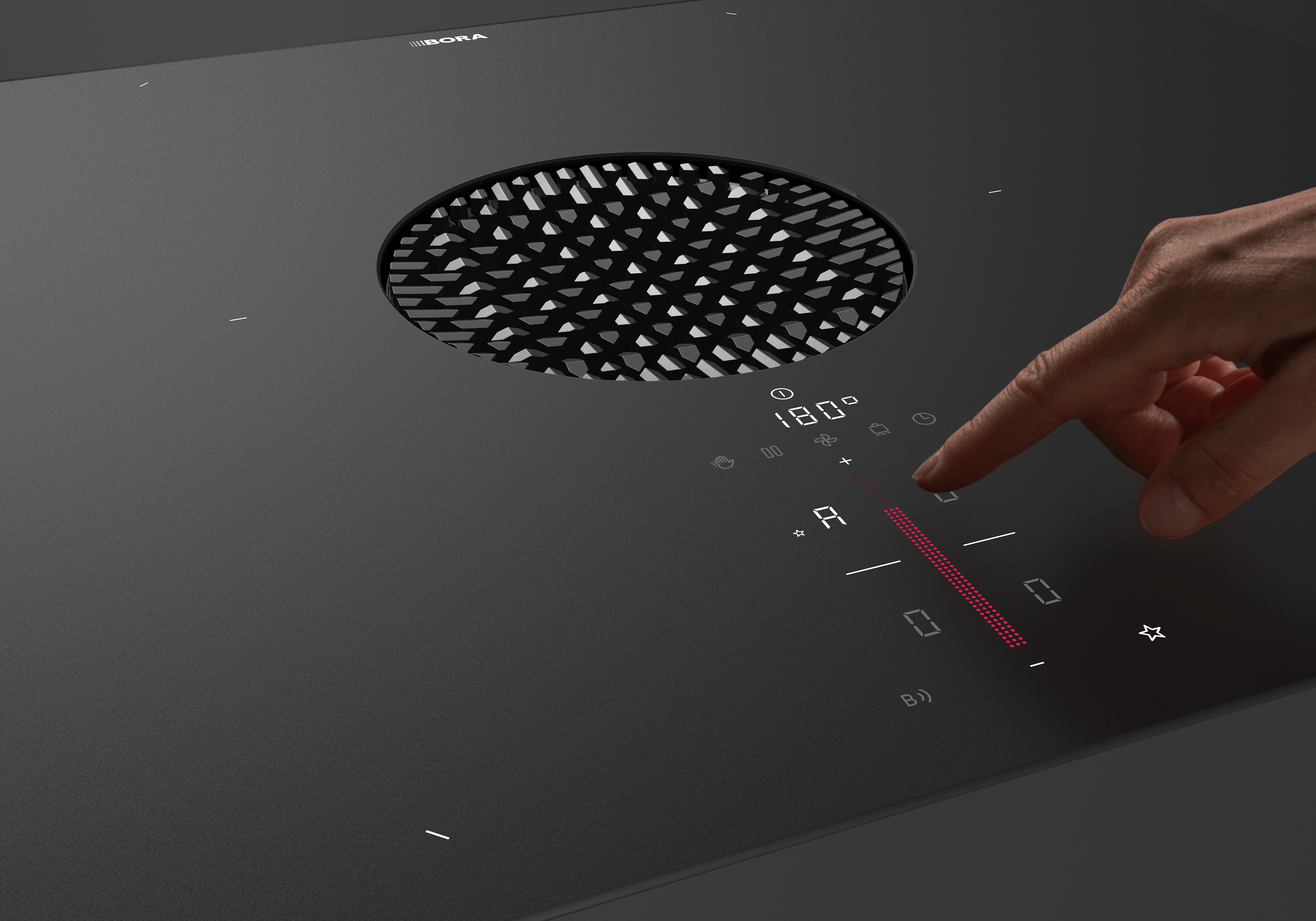 The purist cooktop extractor system with maximum cooking space and BORA Assist.