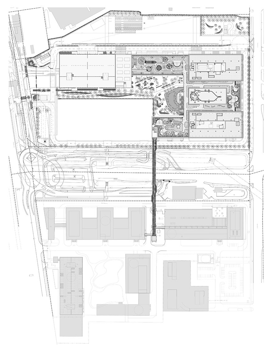 The Robert BOSCH company planned to expand its existing research base in Budapest with the establishment of a Campus2 development. The growth of Bosch in Budapest required the creation of new jobs that could no longer be accommodated in the previous Campus1 area. In 2016, the Campus2 area was purchased for this purpose, located in the immediate vicinity of the existing Campus1. The development is situated in the X. district of Budapest, on the site of a former textile mill, as a brownfield project within an abandoned area. Sibrik Miklós Road physically separated the two campuses, which have now been connected by a double-deck pedestrian bridge.