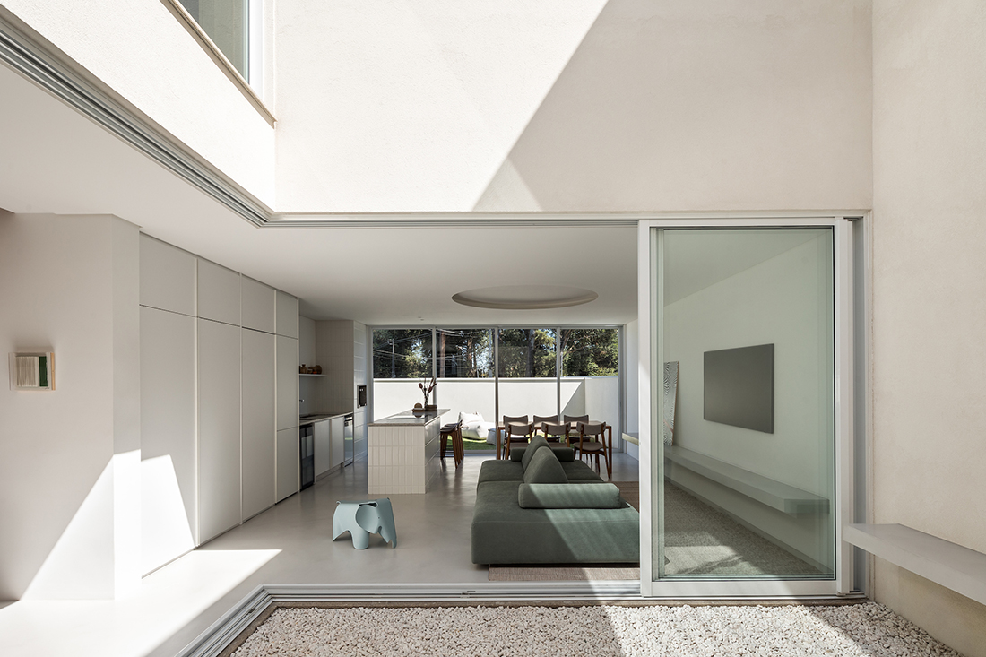 In the first meeting, the clients presented us with extensive research on what constitutes essentialist architecture, not necessarily minimalist. We fell in love with it and created all the finishing solutions, furniture design, and curation of freestanding furniture based on this premise of being essential. A practical and naturally timeless house, serving as a foundation for the family’s story to be told.