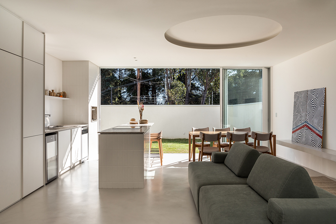 The inspiration for the project came from the architecture itself and the clients. We received the house design while it was still in the Preliminary Study phase, which gave us the freedom to suggest some interior solutions to reinforce the already well-established concept.