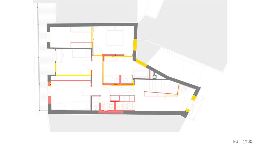 Through renovation and extension, additional living space has been created for a young family, forming a cohesive residential unit across three floors within a diverse and historic ensemble. Thermally and ecologically balanced, this project elegantly completes a series of listed historic buildings in the SOG Zone of Hopfgarten. Various construction phases, dating back to the 15th century and reflecting different past uses, have been seamlessly integrated into a unified whole.