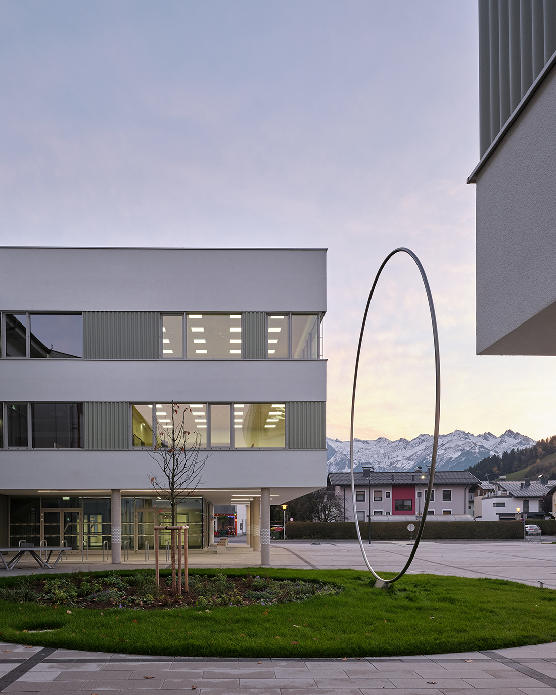 The redesigned school campus in Zell am See combines two new three-story buildings with a fully renovated existing building to form a modern federal school center for a grammar school (BRG) and a business academy (HAK+HLP). More than 9.000 m² of usable space is provided for 850 students. Learning clusters, open areas for independent study, and large atriums with glass roofs create bright, flexible learning environments that support contemporary teaching methods.