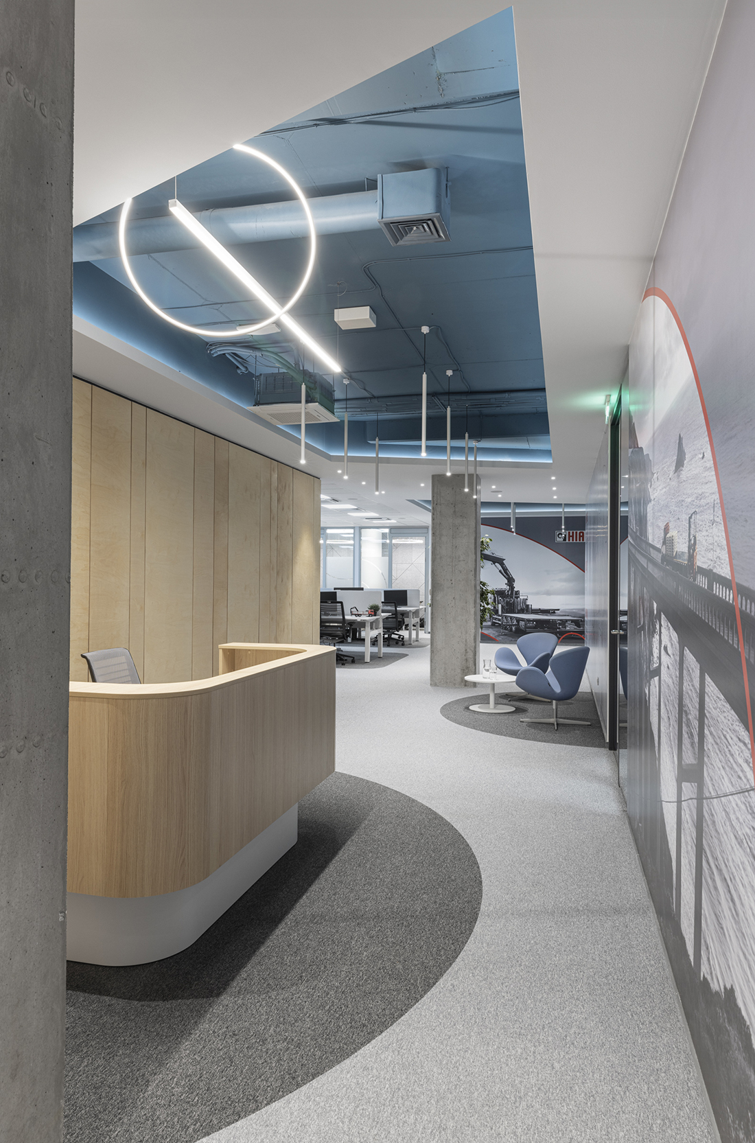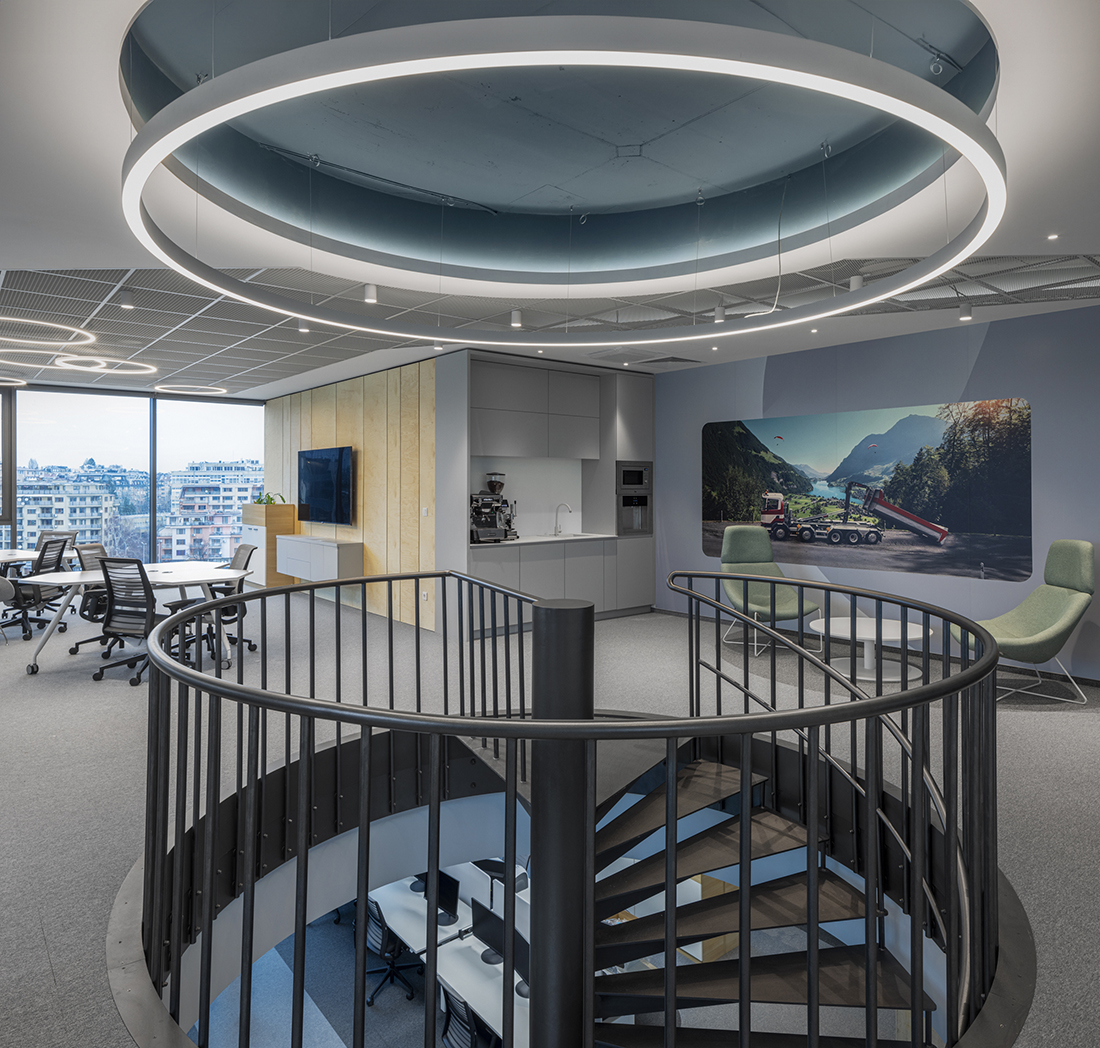 Curved ceilings and rounded forms enhance openness and comfort, while exposed concrete, HVAC, and electrical systems introduce an industrial edge. The balance between raw and refined materials reflects both modern aesthetics and functional efficiency. Although unified in concept, each division expresses its identity through tailored branding, ceiling details, and color nuances across 140 workstations. Delivered between March and November 2024, the project included full interior design, MEP coordination, procurement, and strict on-site quality control, resulting in a workplace that embodies Cargotec’s heritage while supporting productivity and well-being.