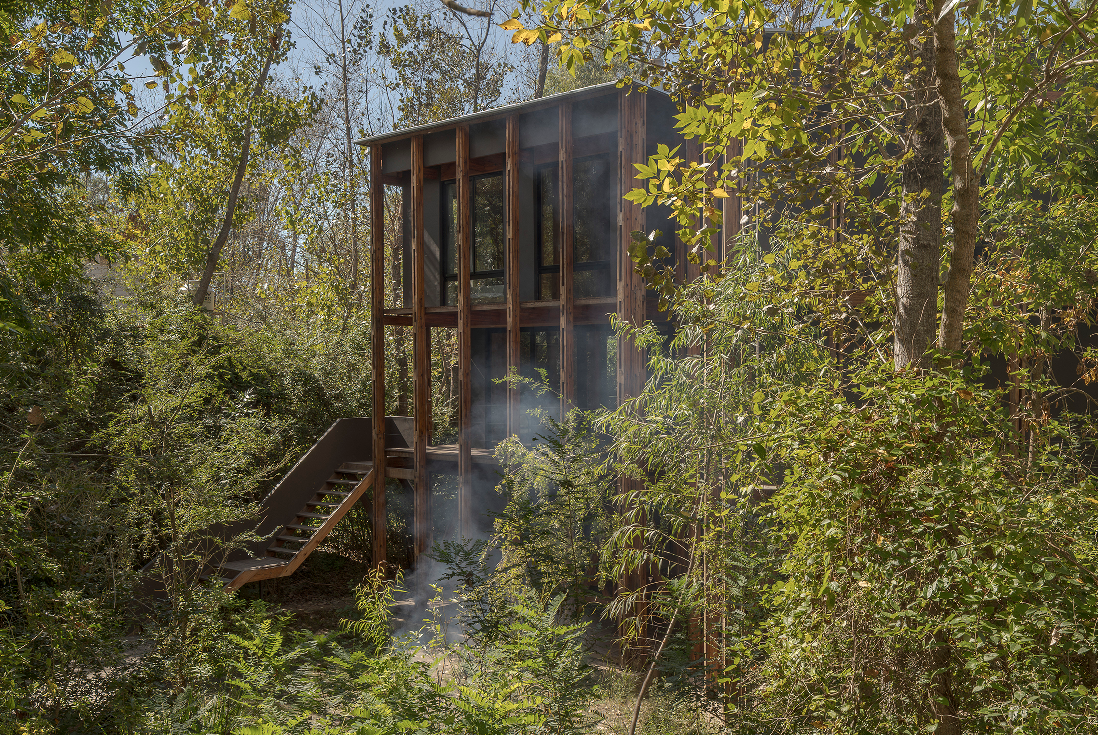 The Doshi Retreat, on the Vitra Campus in Weil am Rhein, was imagined as a place where contemplation unfolds slowly. The architects began with an emotional memory, asking themselves what feeling the space should