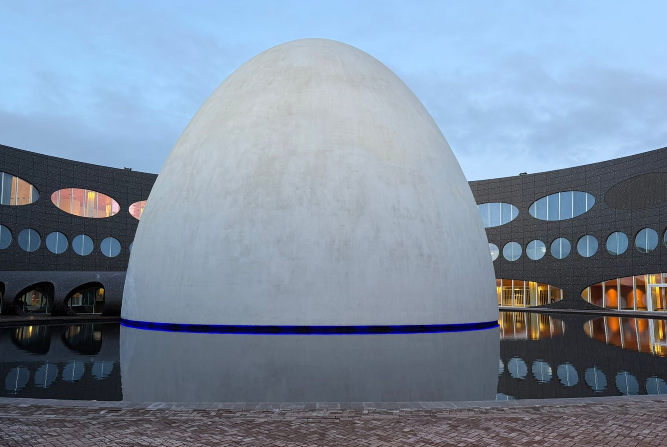 The 50.000 sqm design of Vitus Bering Airport draws inspiration from the Gorely Volcano in Kamchatka, with a lake of ice at its center, present most of the year. The circular inner atrium and