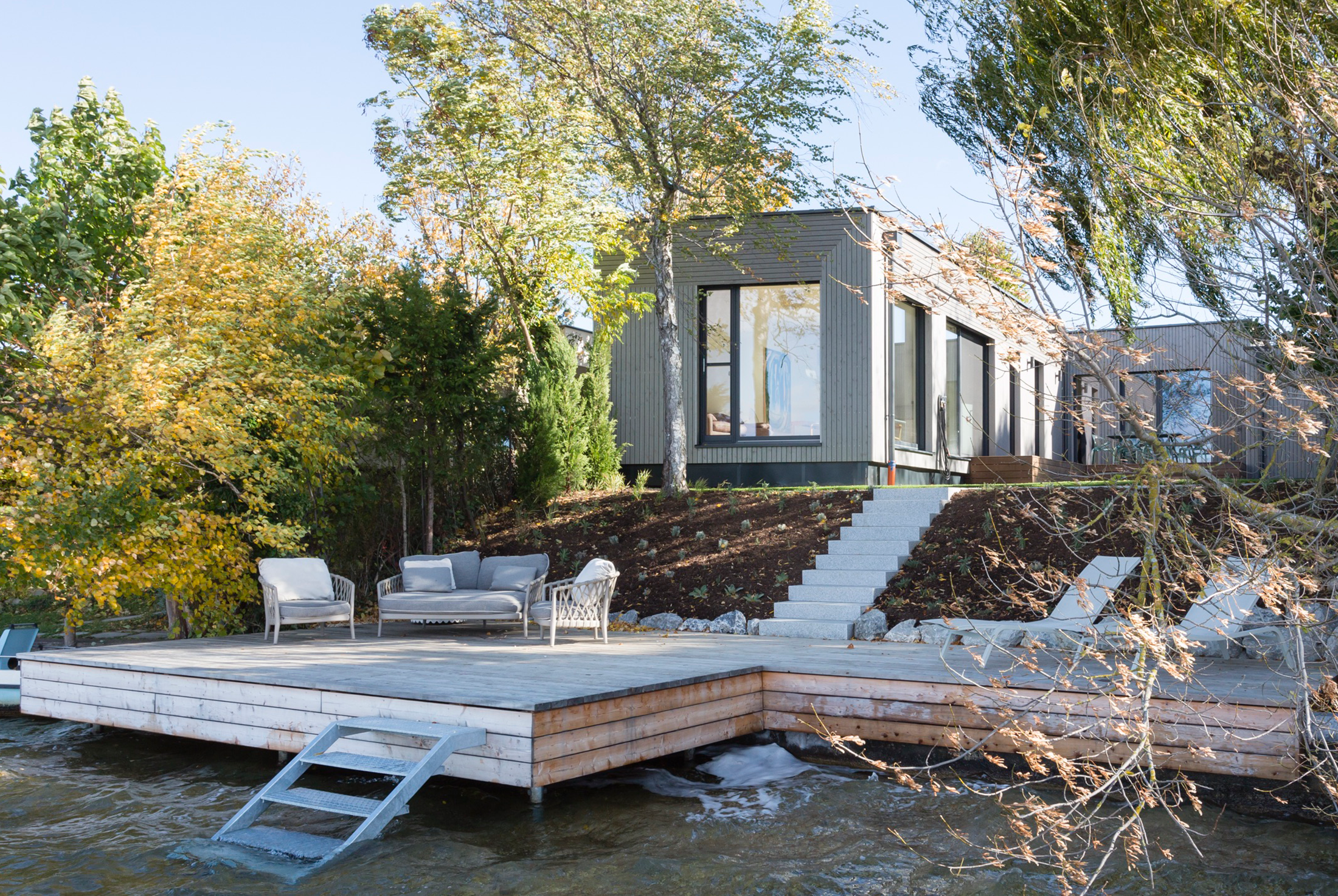 The COMMOD See House is an L-shaped House on the shore of Lake Neufeld in Burgenland. Two modules form a clear structure, positioned to open toward the lake and maximize the views. Upon entering,