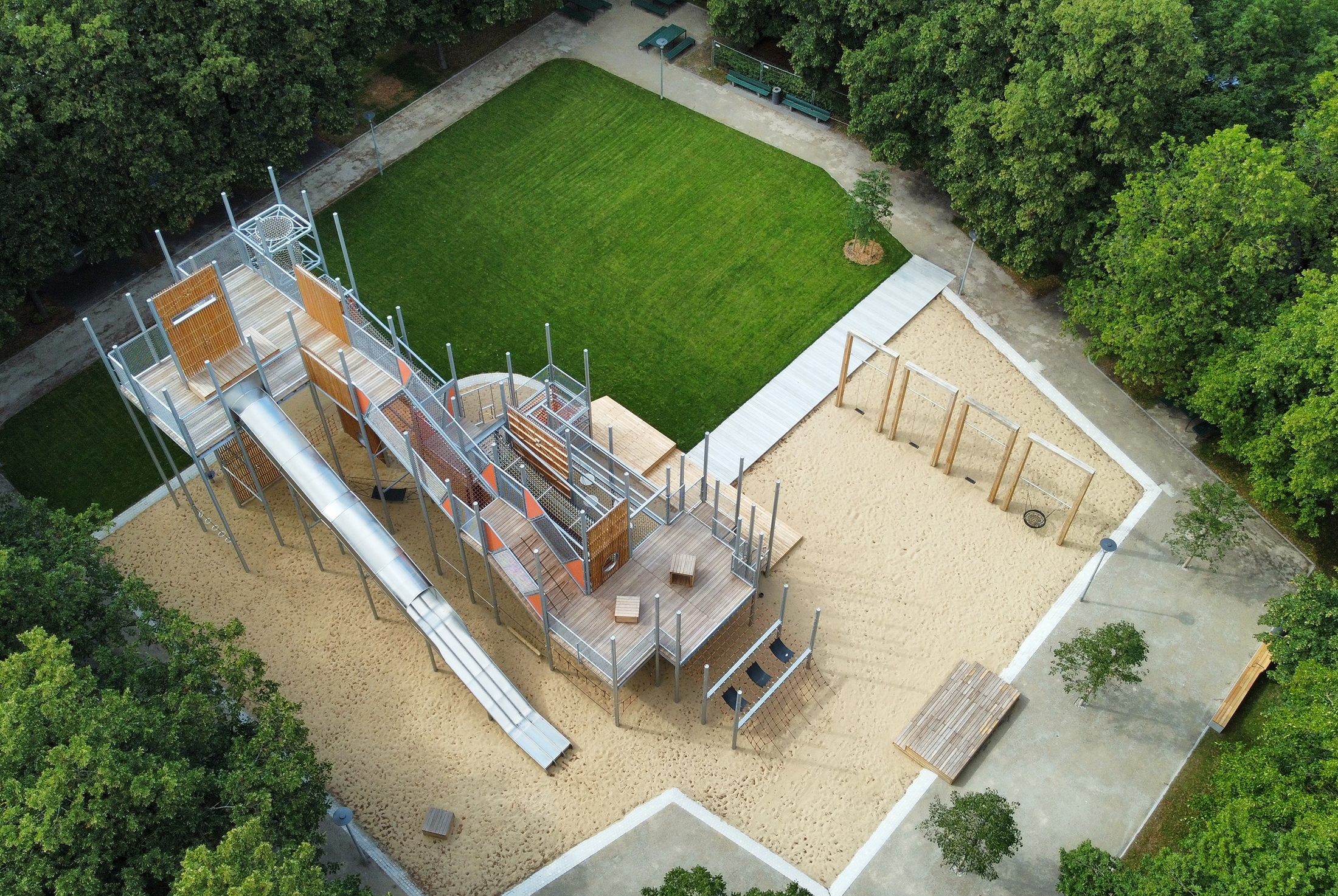 The large playground at Theresienwiese and the stations within the multi-row linden avenue have been redesigned in an attractive way, while preserving the valuable tree population, integrating existing surfaces and furnishings where appropriate. The