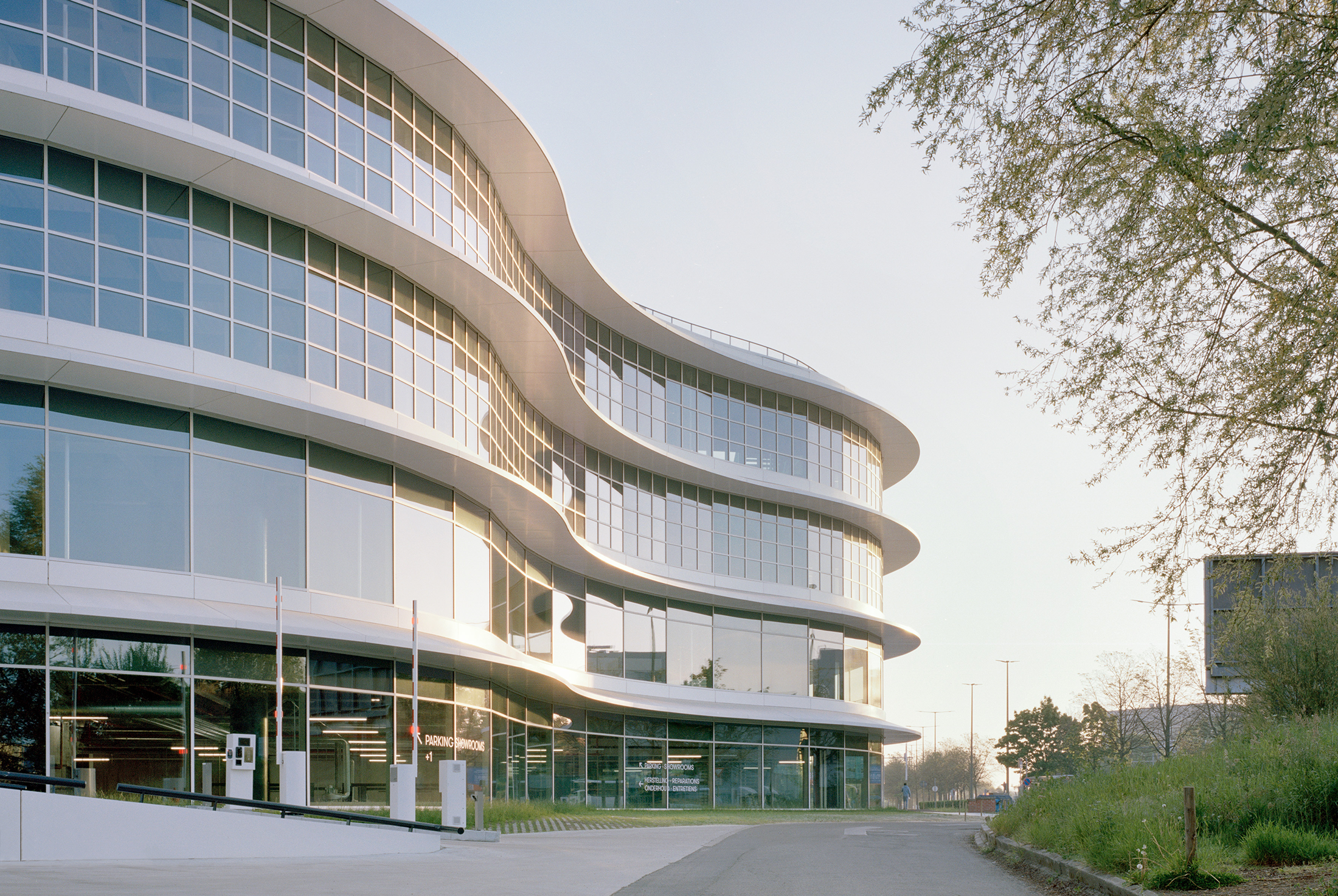 Architectural Sequence – A Symbolic Thread Intertwining Science and Architecture The building comprises an extension for the company to accommodate human genetic research, sequencing diagnostics, and patient treatment facilities. A new L-shaped structure has