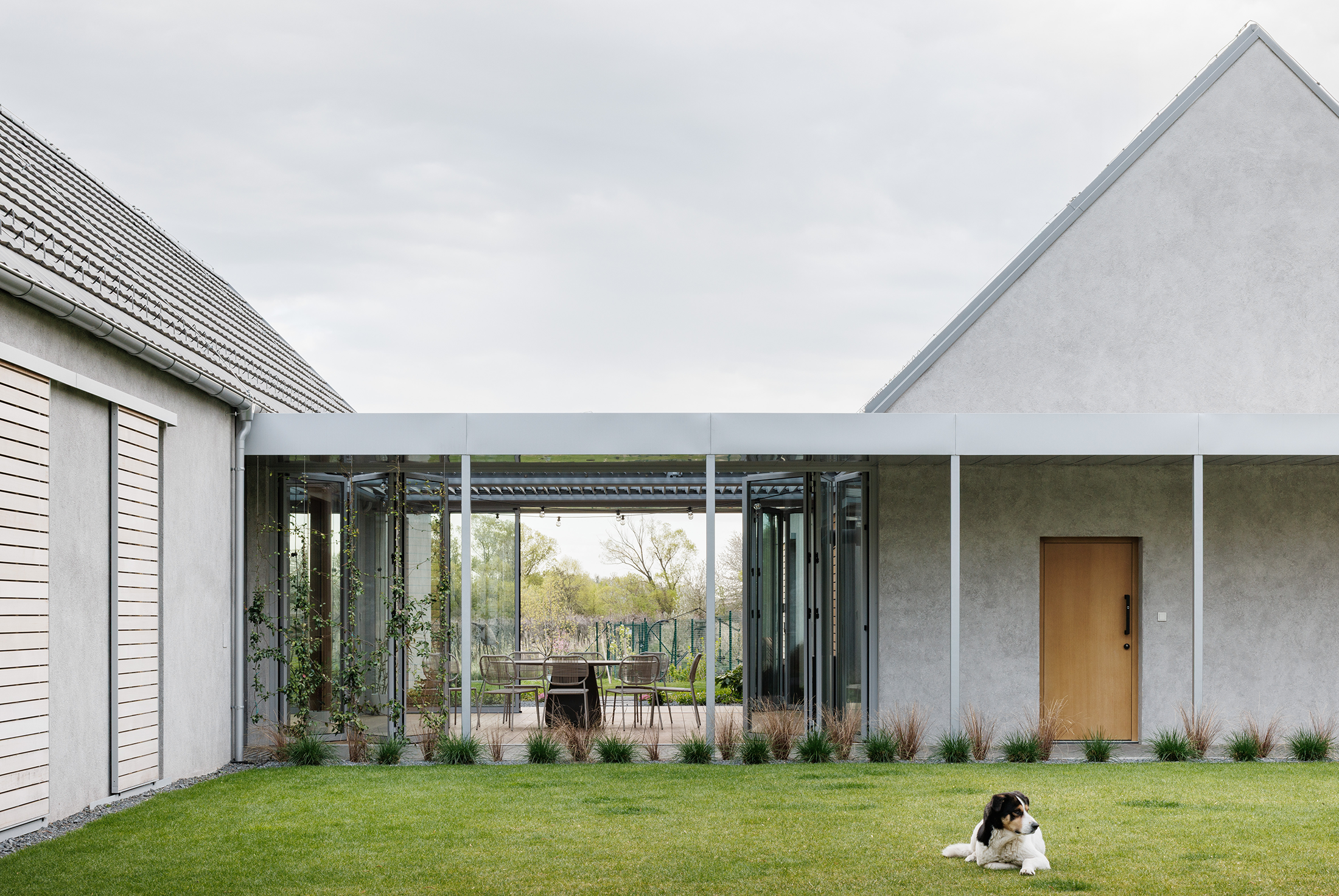 The house stands on the outskirts of a traditional wine village in Slovakia, close to the vineyards. The concept is based on the original urbanism of this region, which used to consist of long