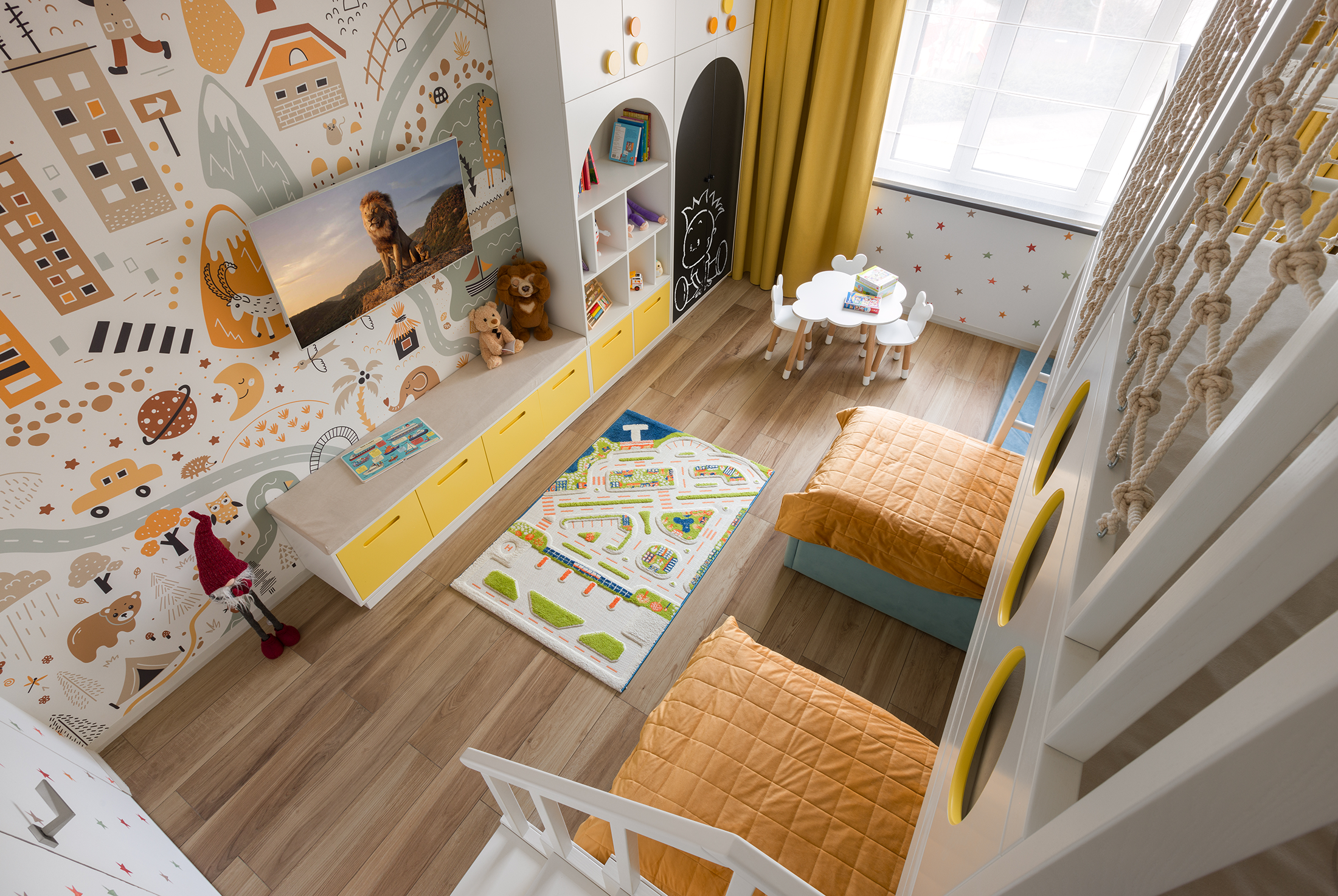 This is not just a children's room, it's the official headquarters for young world conquerors. We have created a unique space that serves as a powerful tool for the development of two active boys.