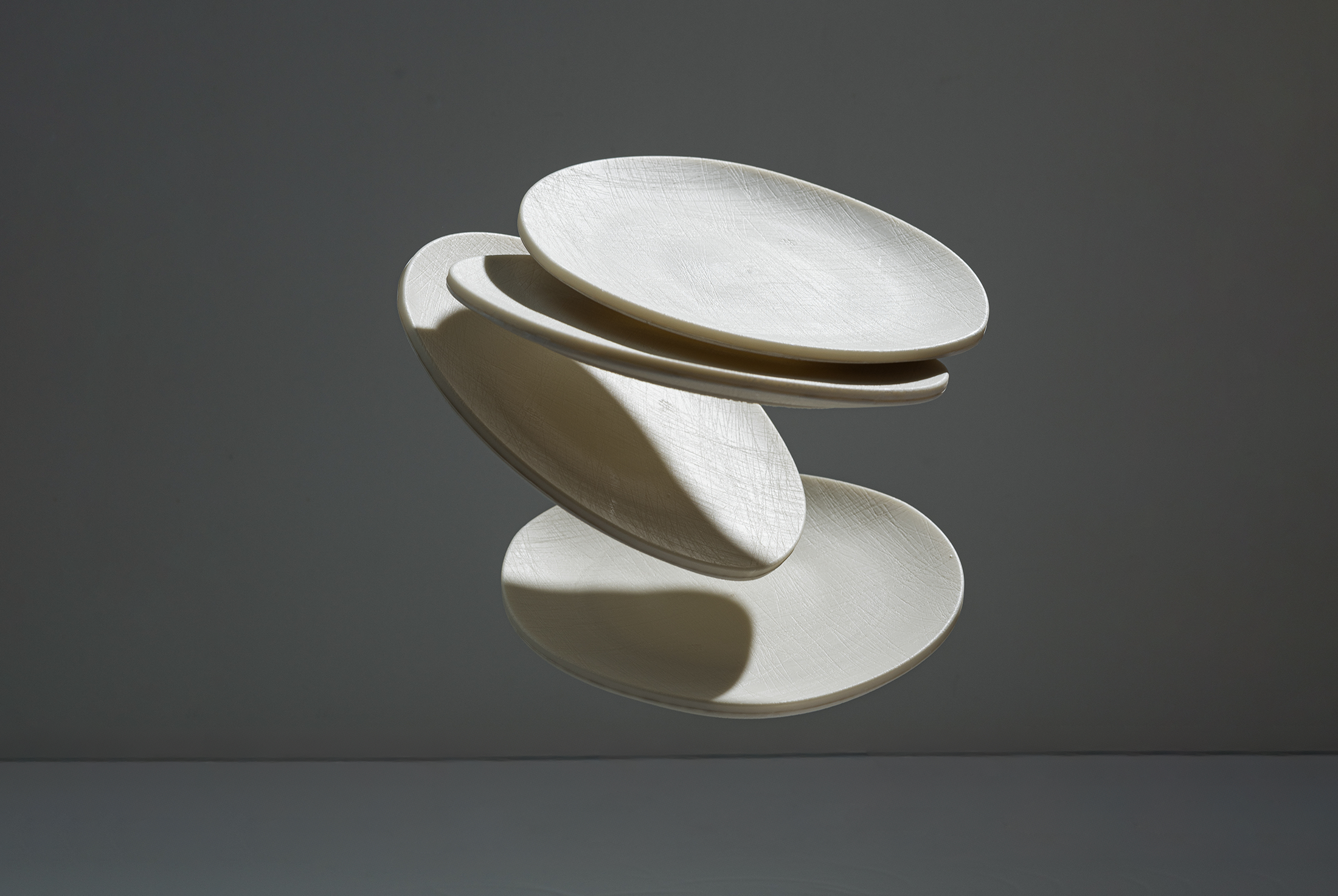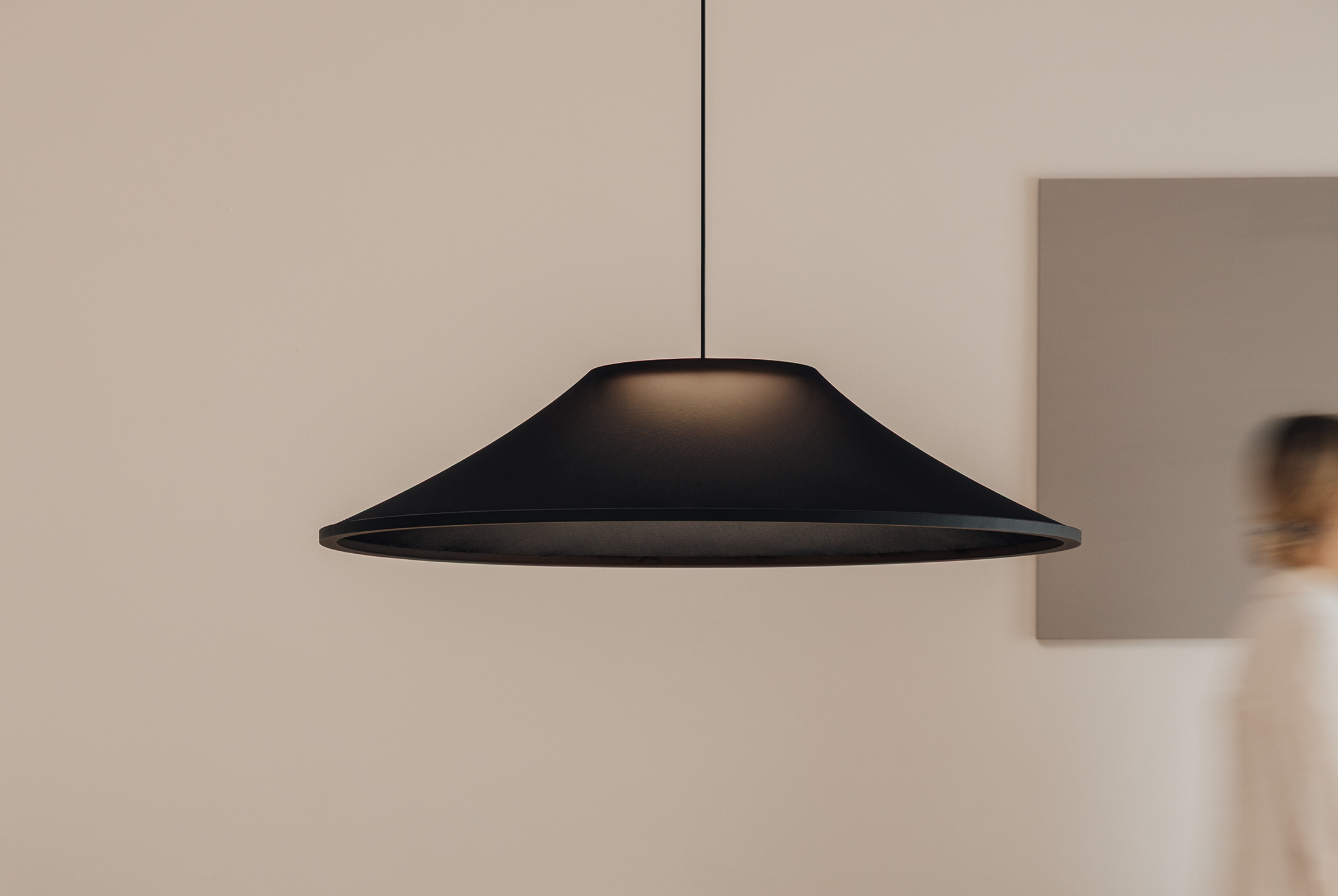 Warp emerges from a circumference of the horizontal plane and takes shape with true fluidity. Thanks to a translucent and elastic material such as textile, this suspension luminaire plays with the effects of translucency,