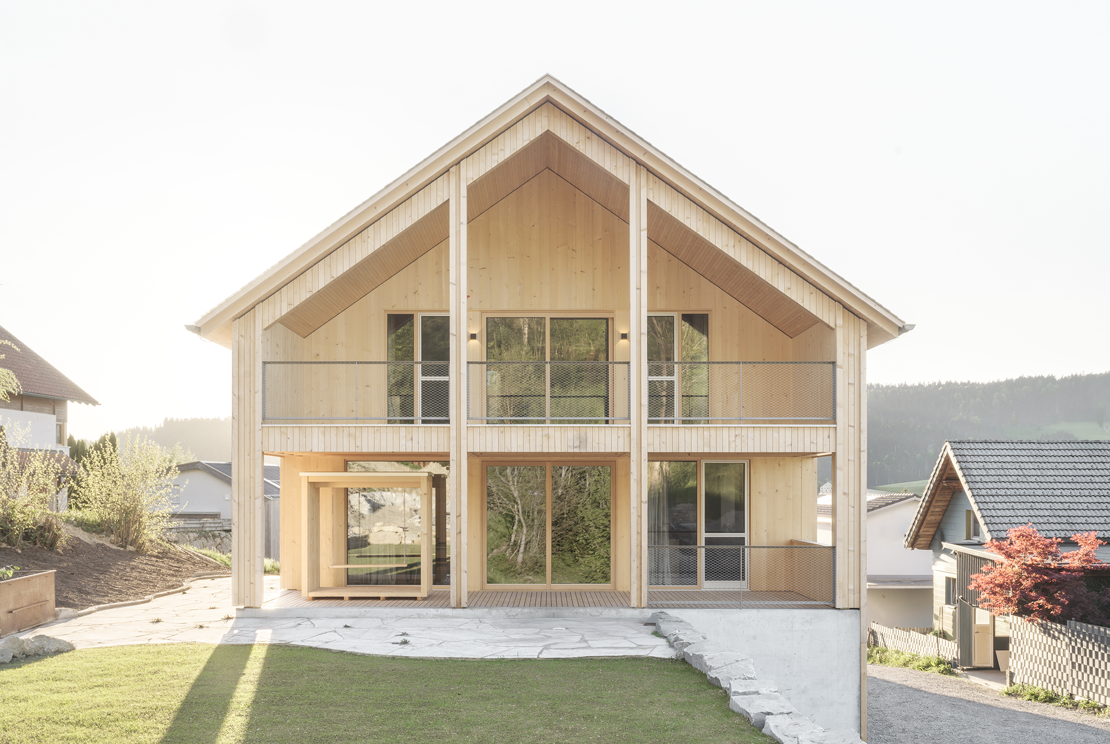 This residential project in Schönberg am Kamp represents a contemporary and sustainable living concept, tailored to the needs of elderly residents. Constructed primarily from exposed cross-laminated timber, the house creates a warm and natural