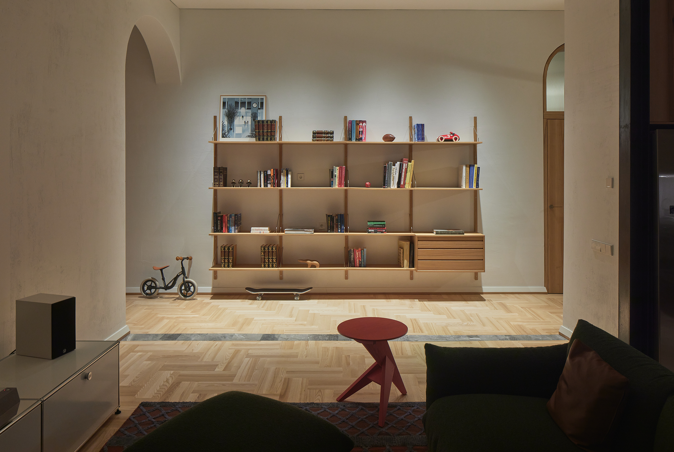 The interior of the Ellex Valiūnas office is conceived as a multilayered architectural structure, rooted in the logic of relief and topography. The space is formed as a coherent system that brings together movement,