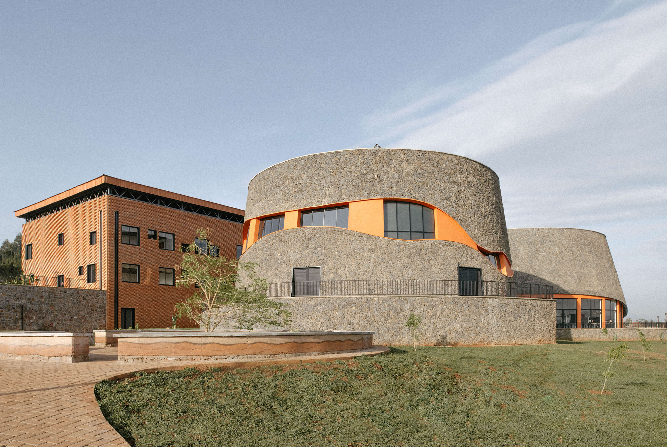 IRCAD Africa trains African surgeons in laparoscopic surgical techniques. Rwanda, the country of a thousand hills, is the main inspiration for the shape of the building. The project is divided into three irregular prisms