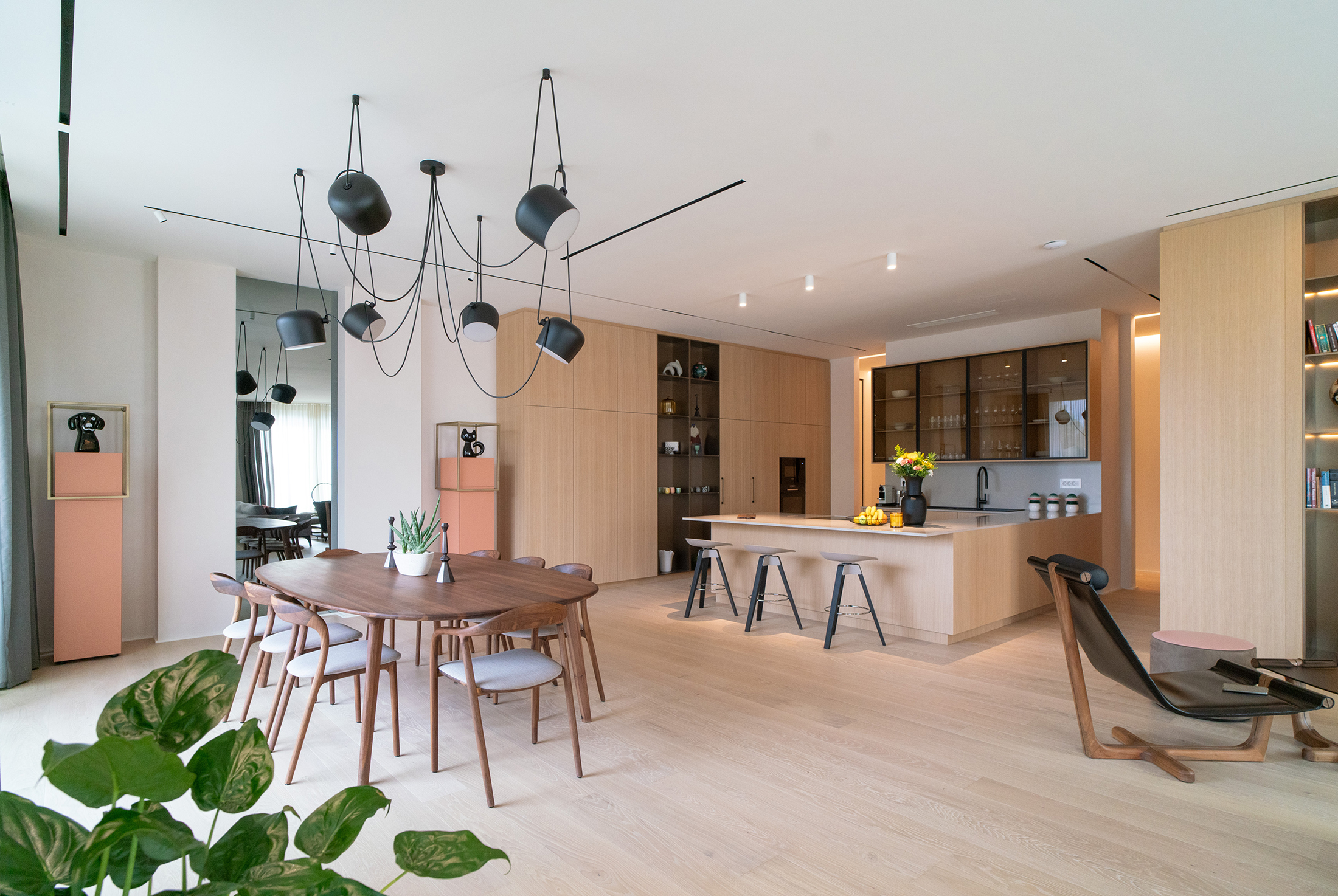 A 200 m² family apartment, located opposite Kalemegdan Park in the historic center of Belgrade, explores the relationship between domestic life and the surrounding landscape. The interior is organized as a sequence of spatial