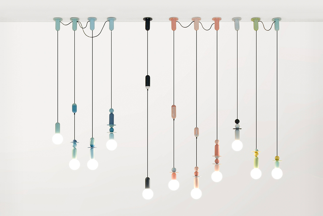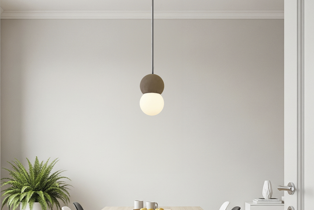 The wide, slim shape of the Acustica lampshade is inspired by the cymbal of a drum kit, but reverses the musical concept by absorbing sound from the space, to create a high level of