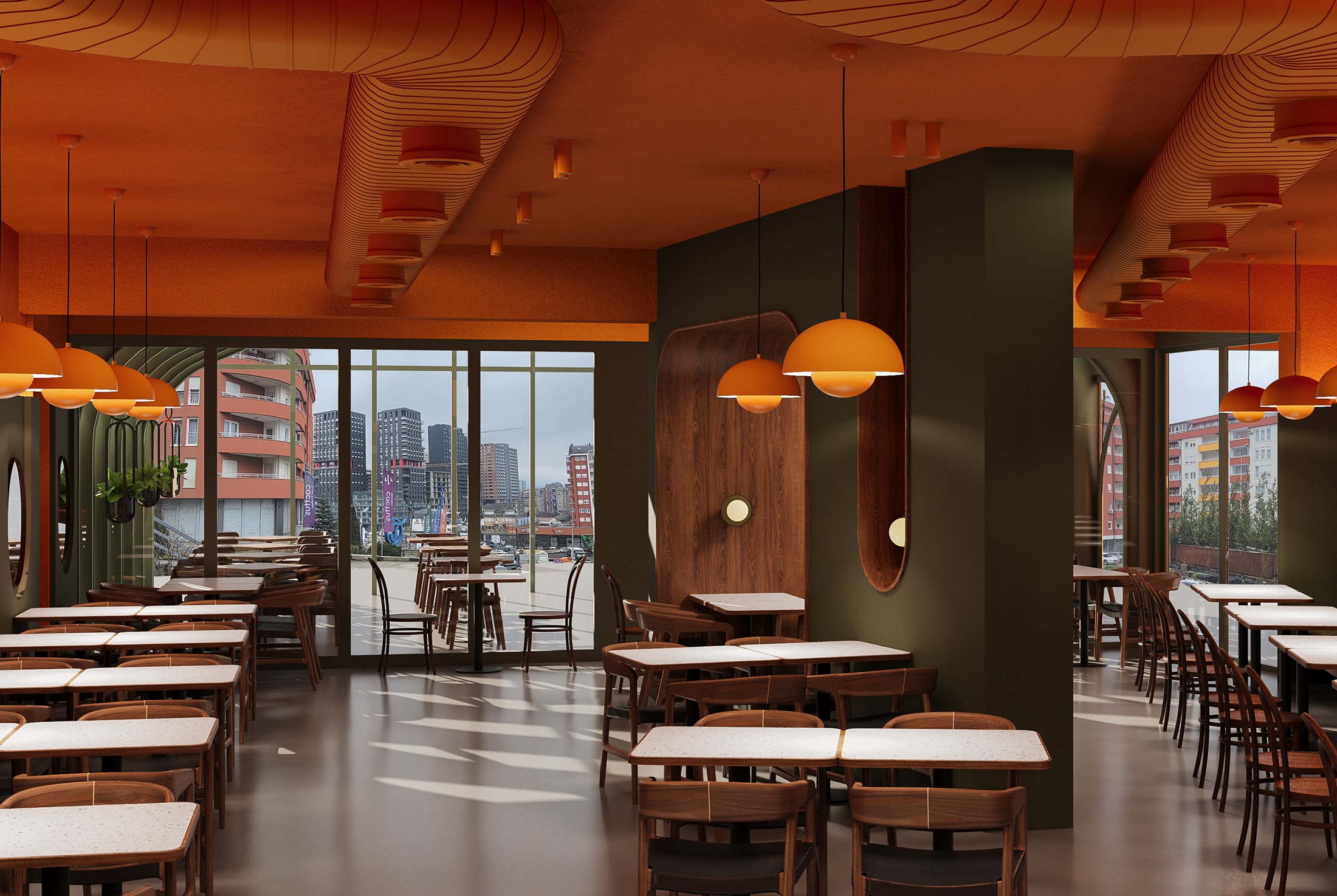 HAYA Coffee Shop & Workstation Concept: HAYA is conceived as a hybrid space, combining a coffee shop with a workstation environment. It is designed for people who move between focus, conversation, and moments of